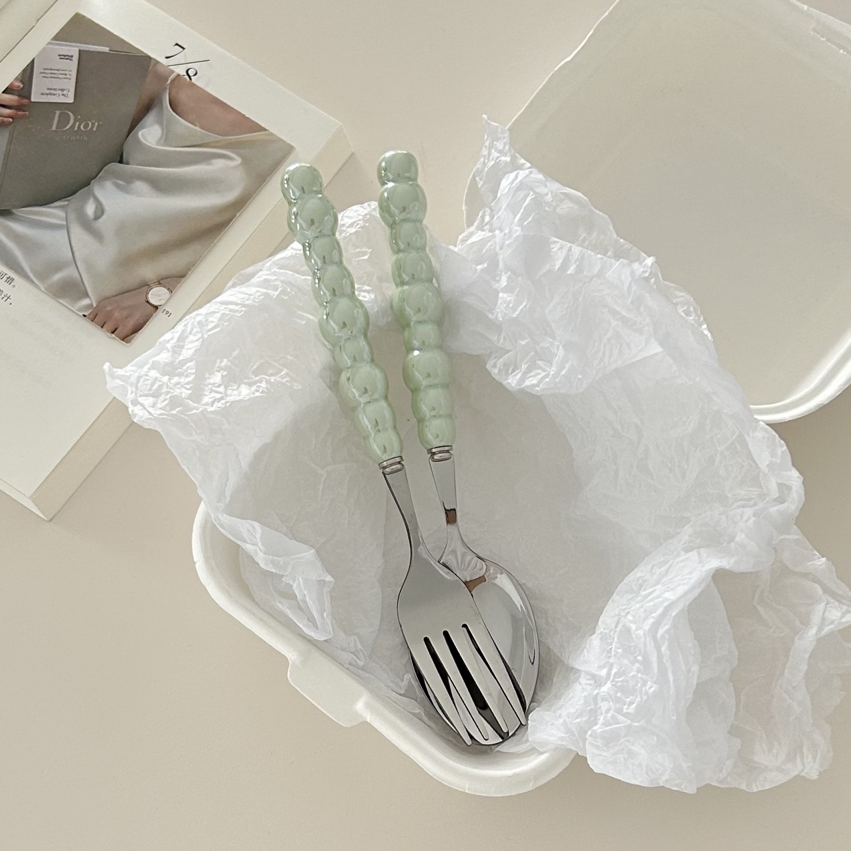 green pearl spoon fork