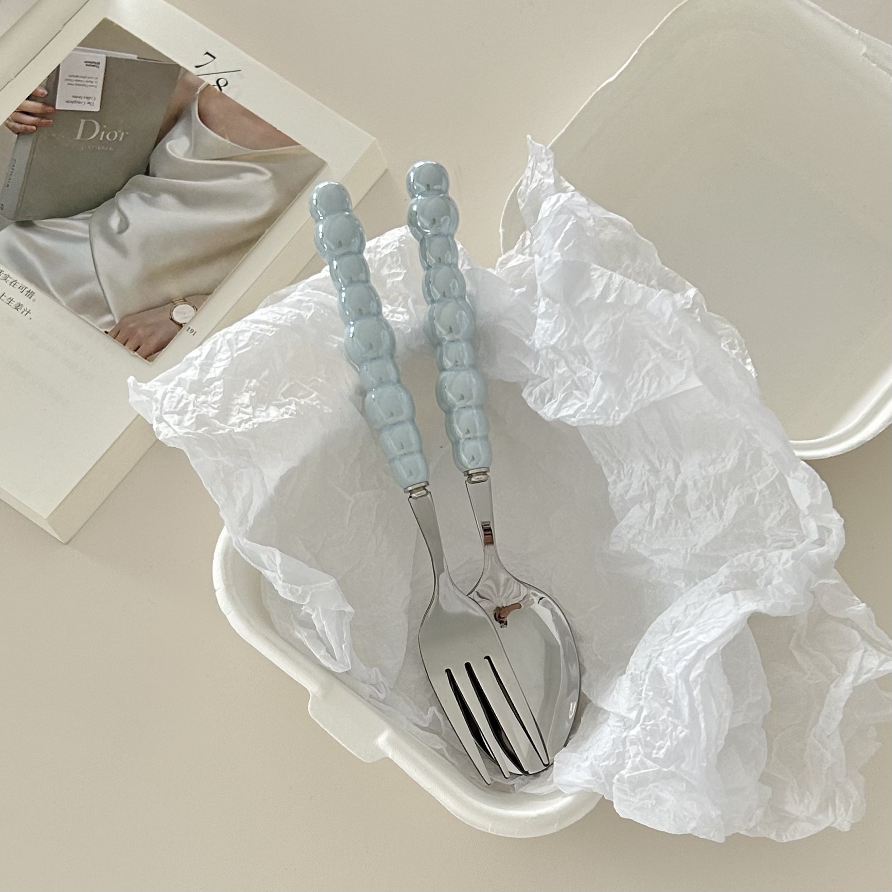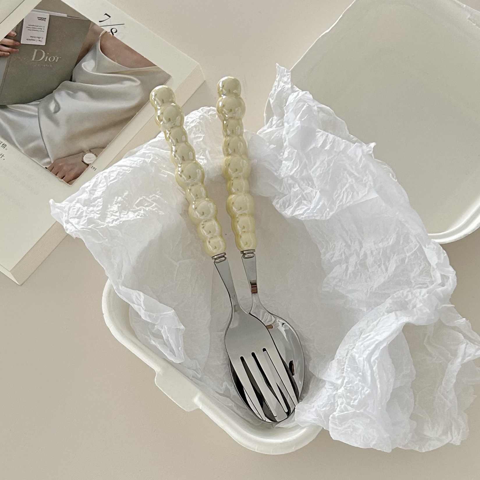 white pearl spoon fork