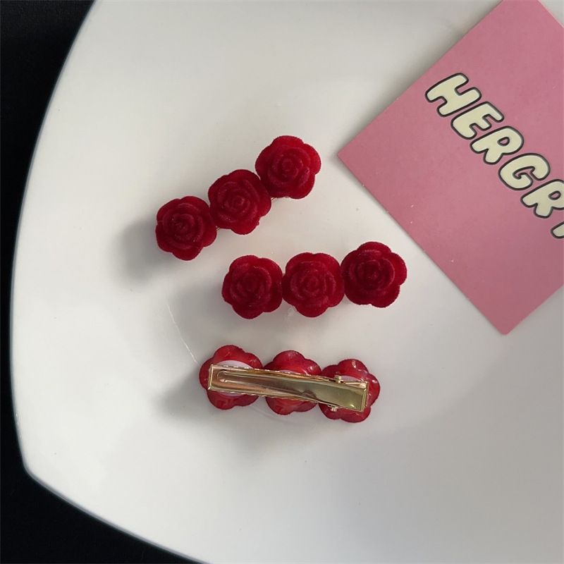 three flocking camellia barrettes 1