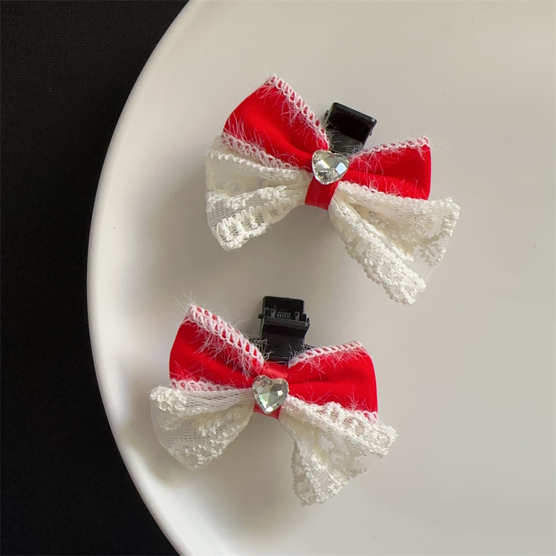 resin red bow tie barrettes