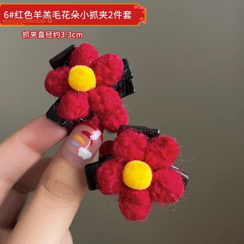 red lamb wool flower small jaw clip (single)