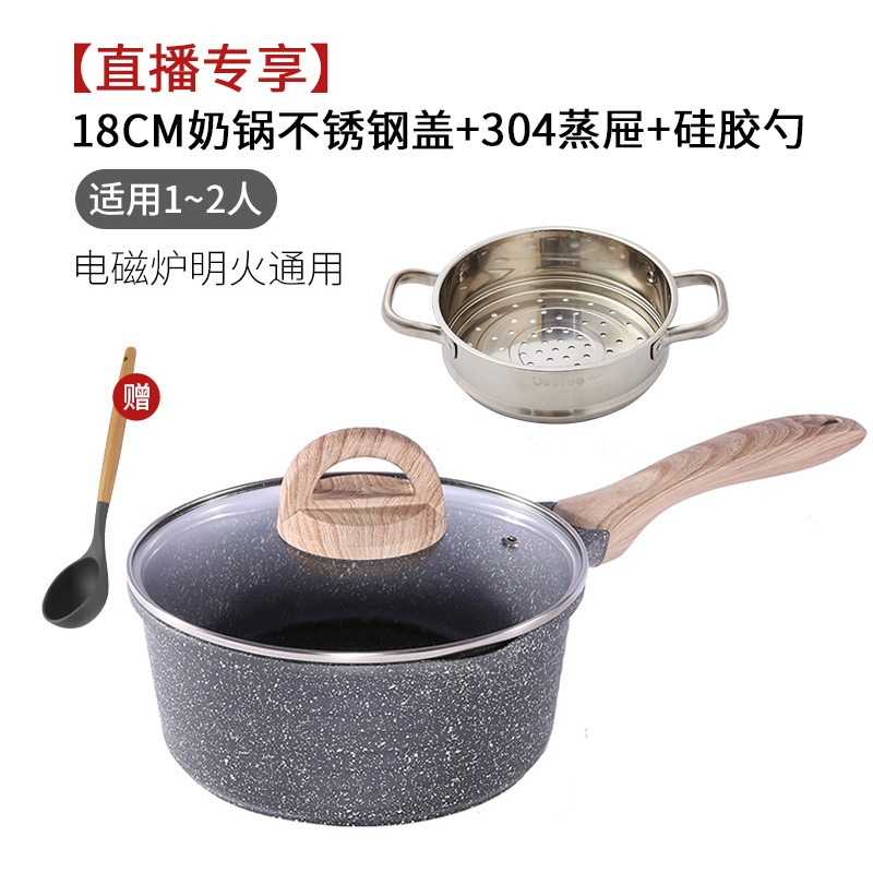 [exclusive for live streaming] 18cm milk pot stainless steel cover +304 steamer + silicone spoon