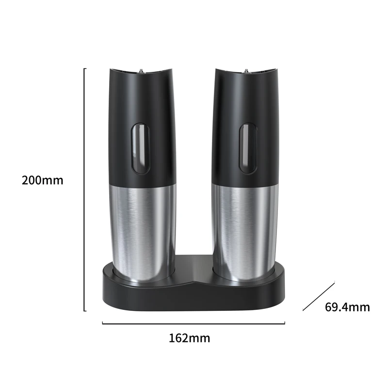 2pcs Set Stainless Steel Gravity Salt and Pepper Grinder with Charging Base USB Battery Powered Spice Mill