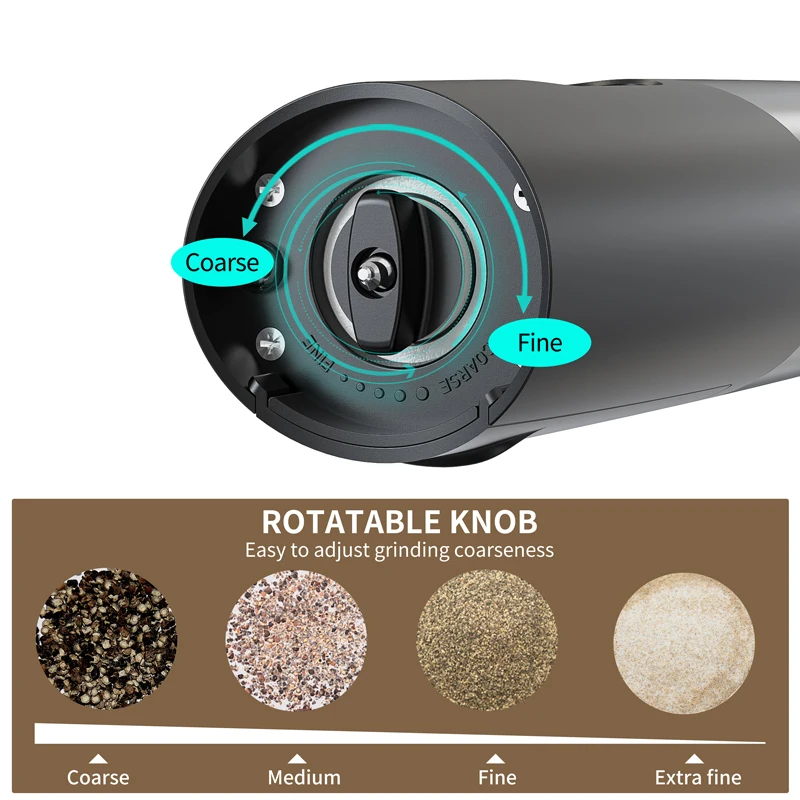 5. With adjustable grinder, you can easily adjust the grinder knob to choose the coarseness of your spice, salt or peppercorn