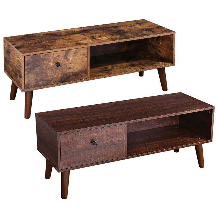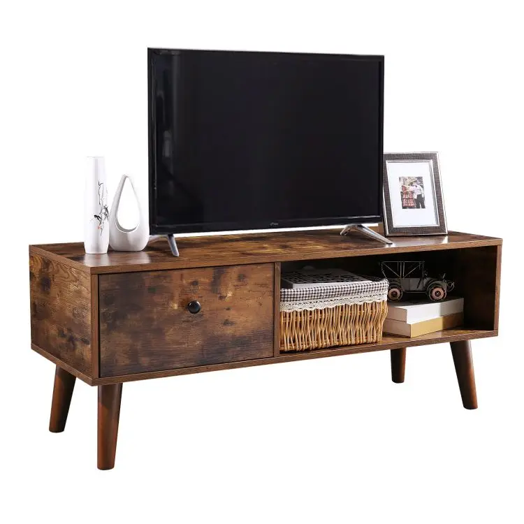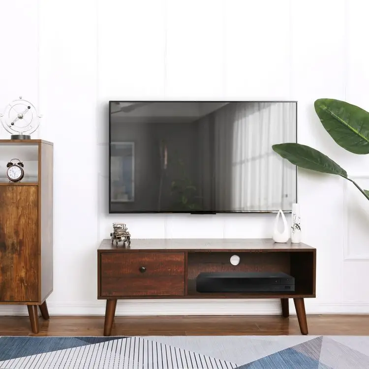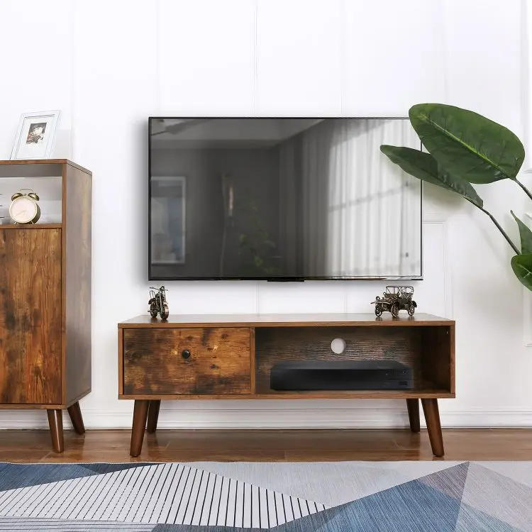 Walnut Color TV Cabinet, Rustic Brown TV Stand Console, Entertainment Center with Drawer in Living Room Home Office