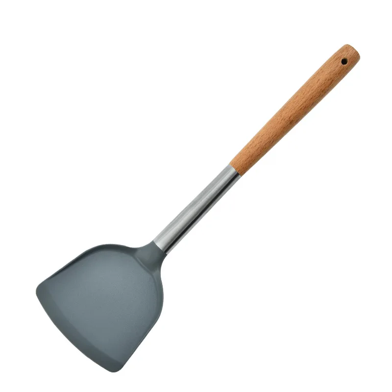 Wholesale 5pcs Household Silicone Kitchenware with Wooden Handle Egg Beater Utensils