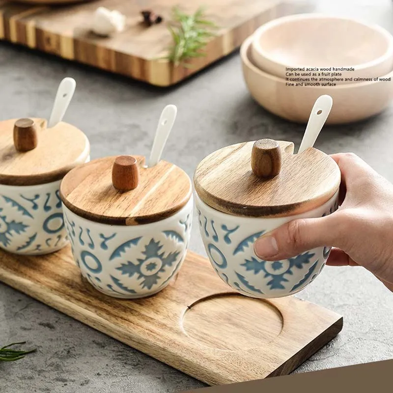 Modern Round Ceramic Spice Jars Set with Lids Porcelain Storage Bottles for Honey Condiments Multifunction Cover Styles Pattern