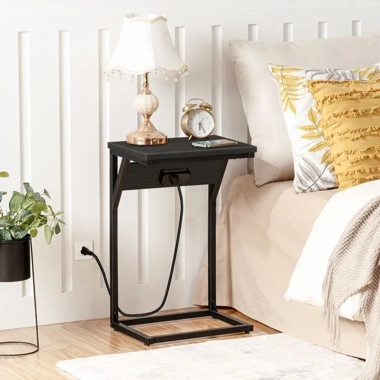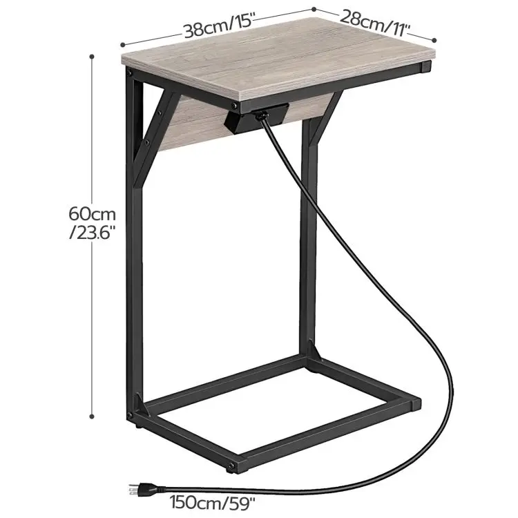 Vintage C-Shaped Side End Table with Charging Station, Industrial Sofa Coffee Table with USB Ports and Socket for Living Room