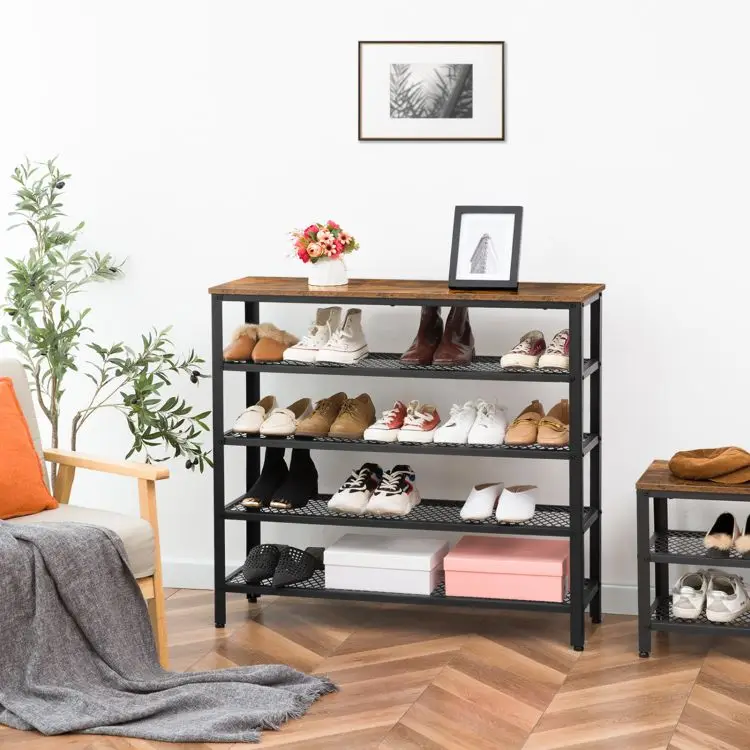 Industrial 5 Tier Shoe Storage Rack, Vintage Metal Shoe Stand Shelf for 16/17/18/19/20 Pairs Shoes Organizer in Entryway Hallway