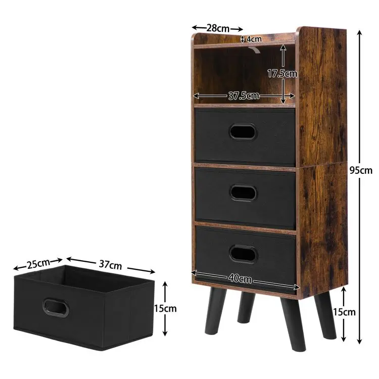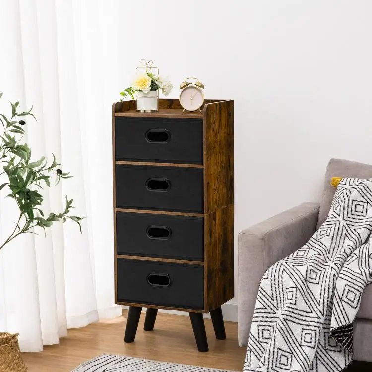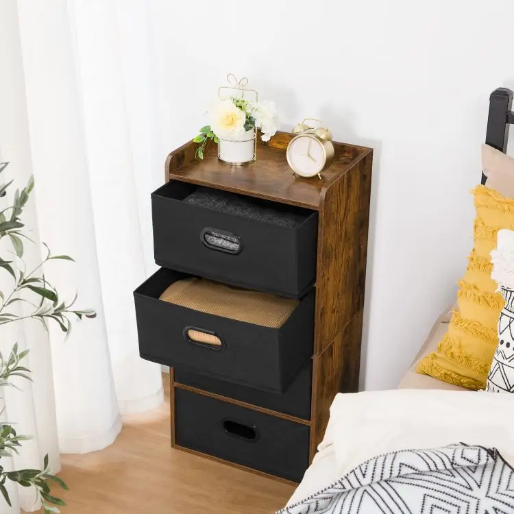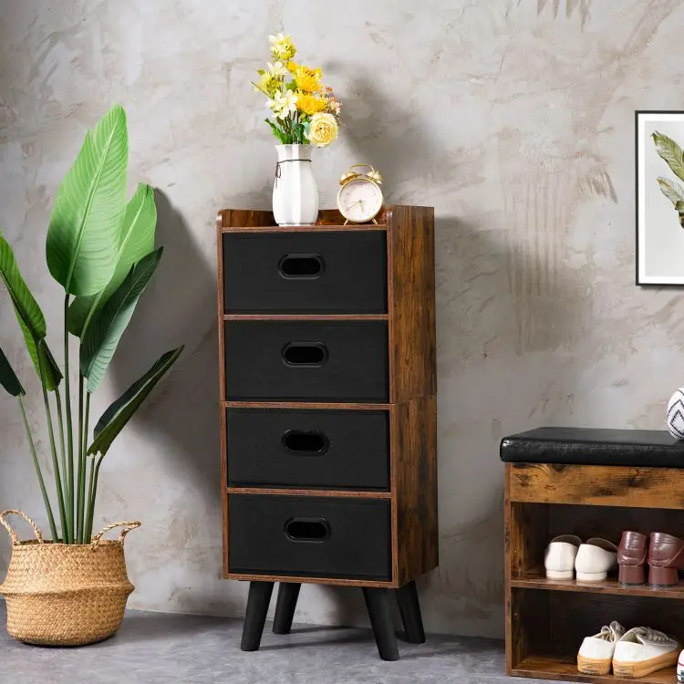 Industrial Style Fabric Drawer Dresser for Storage Organizer, Vintage Chest Storage Tower with 4 Drawers for Hallway Nursery