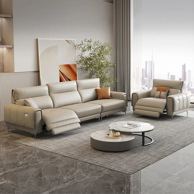 Luxury Electric Slip Villa Sofa Bed Headrest Adjustable Modular Leather L Shape Recliner Movable Sectional Villa Sofa Set