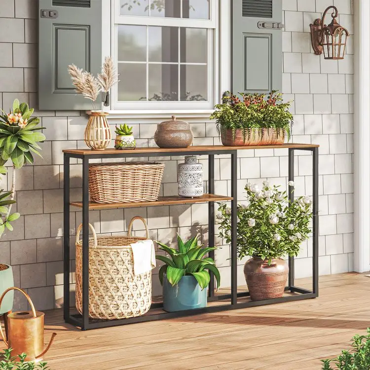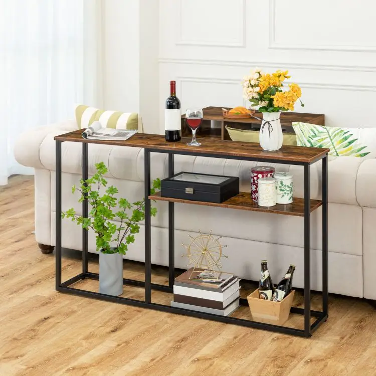 Slim Console Table, Industrial Hallway Table, Sofa Table with Storage Shelf, Narrow Entrance Table for Entranceway Hall
