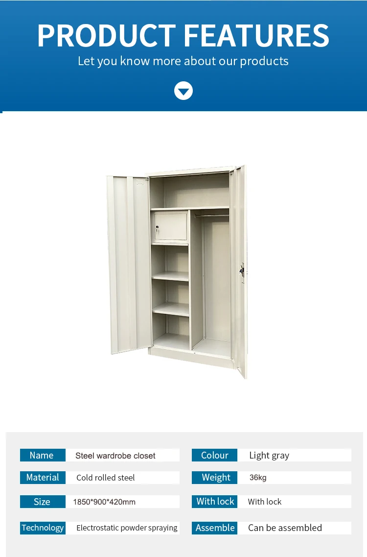 1.Mixed and double color,color can be optional 2.Outside:equip with a half height mirror inside:equip with a key lock cabinet on the right and a cloth rail on the left