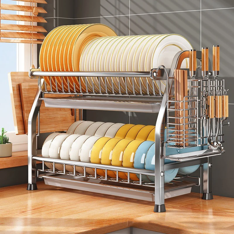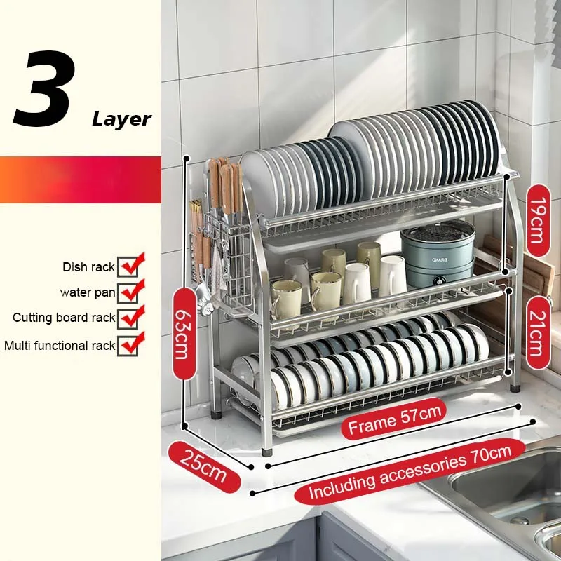 Modern 3-Tier Stainless Steel Dish Drying Rack with Drainer Foldable Kitchen Organizer and Holder for Bowls Plates Utensils