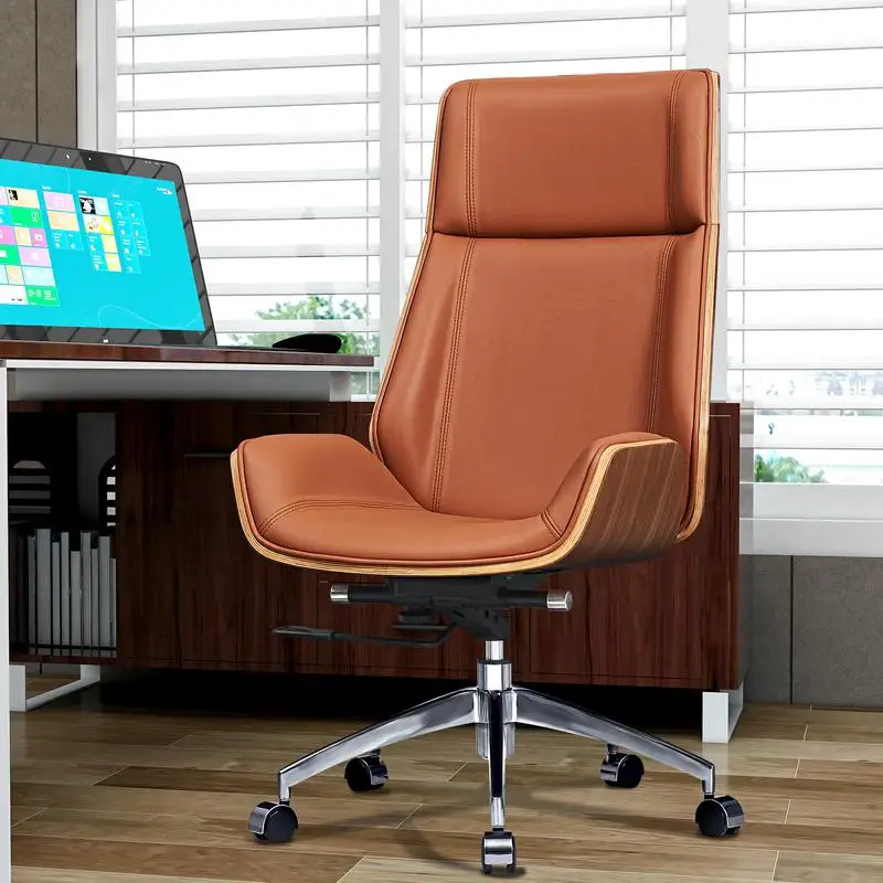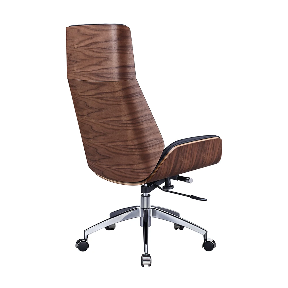 High back plywood shell synthetic leather swivel office recline wheel chairs