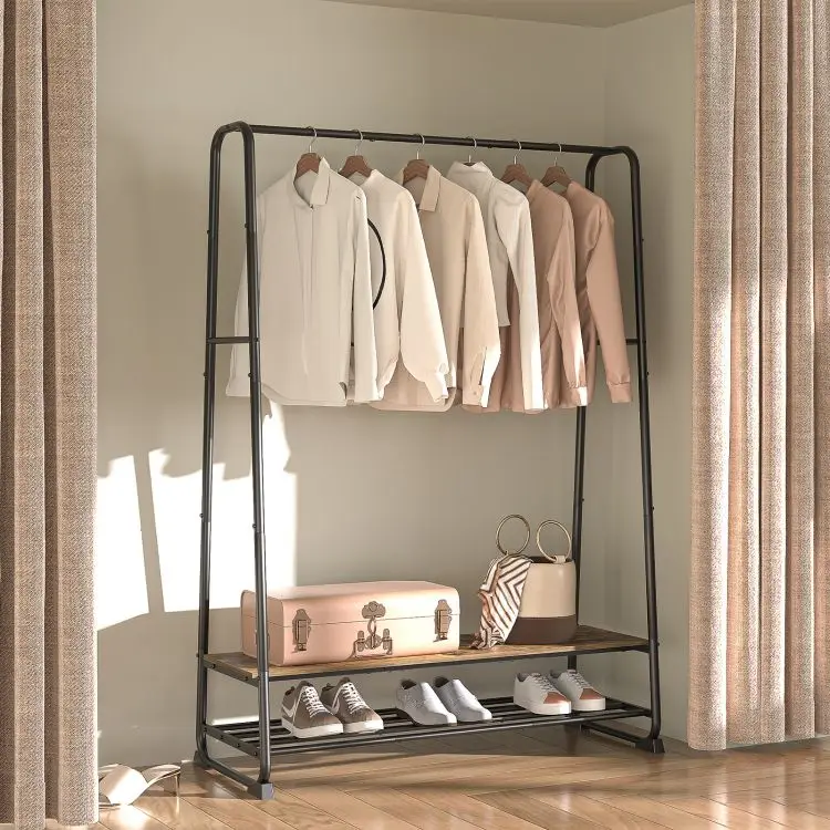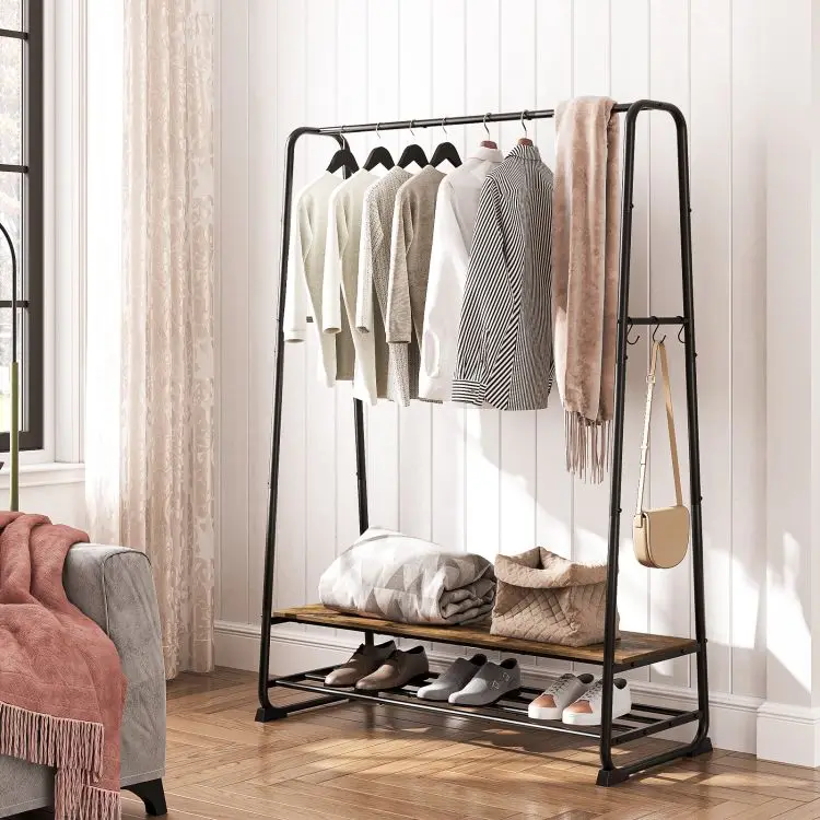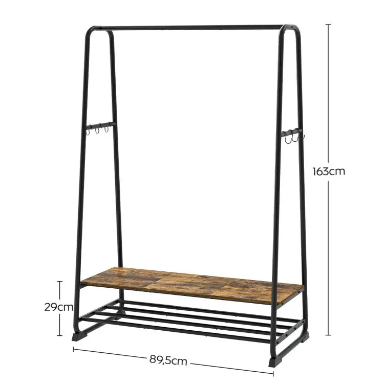 Clothes Rack Garment Rack for Hanging Clothes Industrial Clothing Rack with Shelves Hooks Metal Frame for Bedrooms Entrances