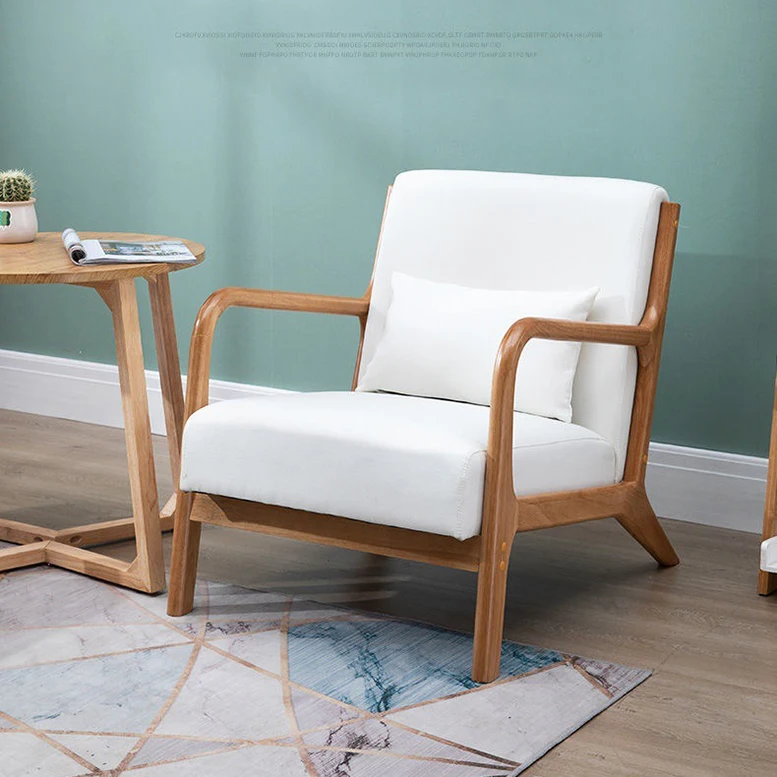 Customized Japanese Style Designs Upholstered Fabric Armchair Living Room Solid Wooden Legs Sofa chair