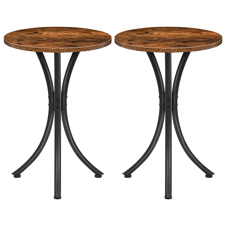 Set of 2 Side Tables, Round End Tables with X-Shaped Metal Frame, Small Round Accent Table for Living Room Bedroom Small Space
