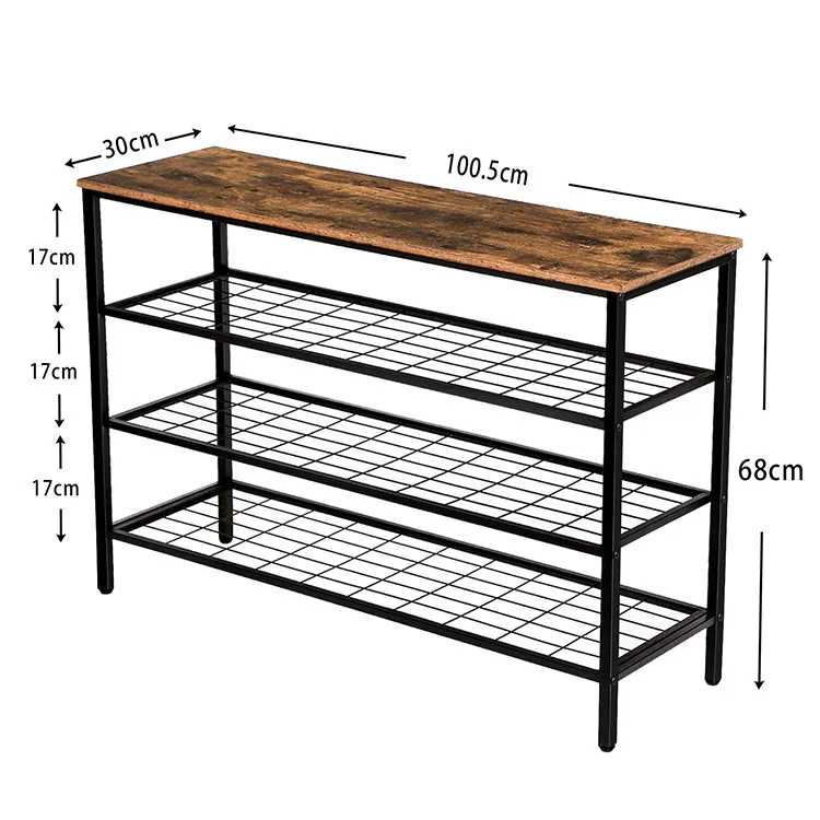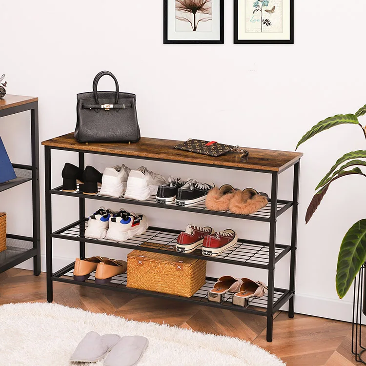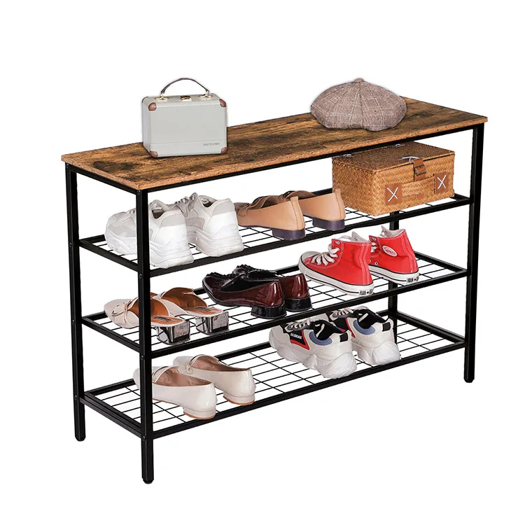 Shoe Rack, 4-Tier Shoe Shelf, Industrial Shoe Storage Organizer with 3 Metal Mesh Shelves, Ideal for Entryway, Hallway, Closet