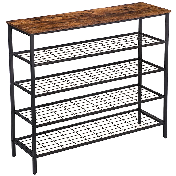 Industrial Style Shoe Racks, Rustic Brown Shoe Storage Rack, Vintage Antique Shoe Stand Shelf for Entryway Shoes Organizer