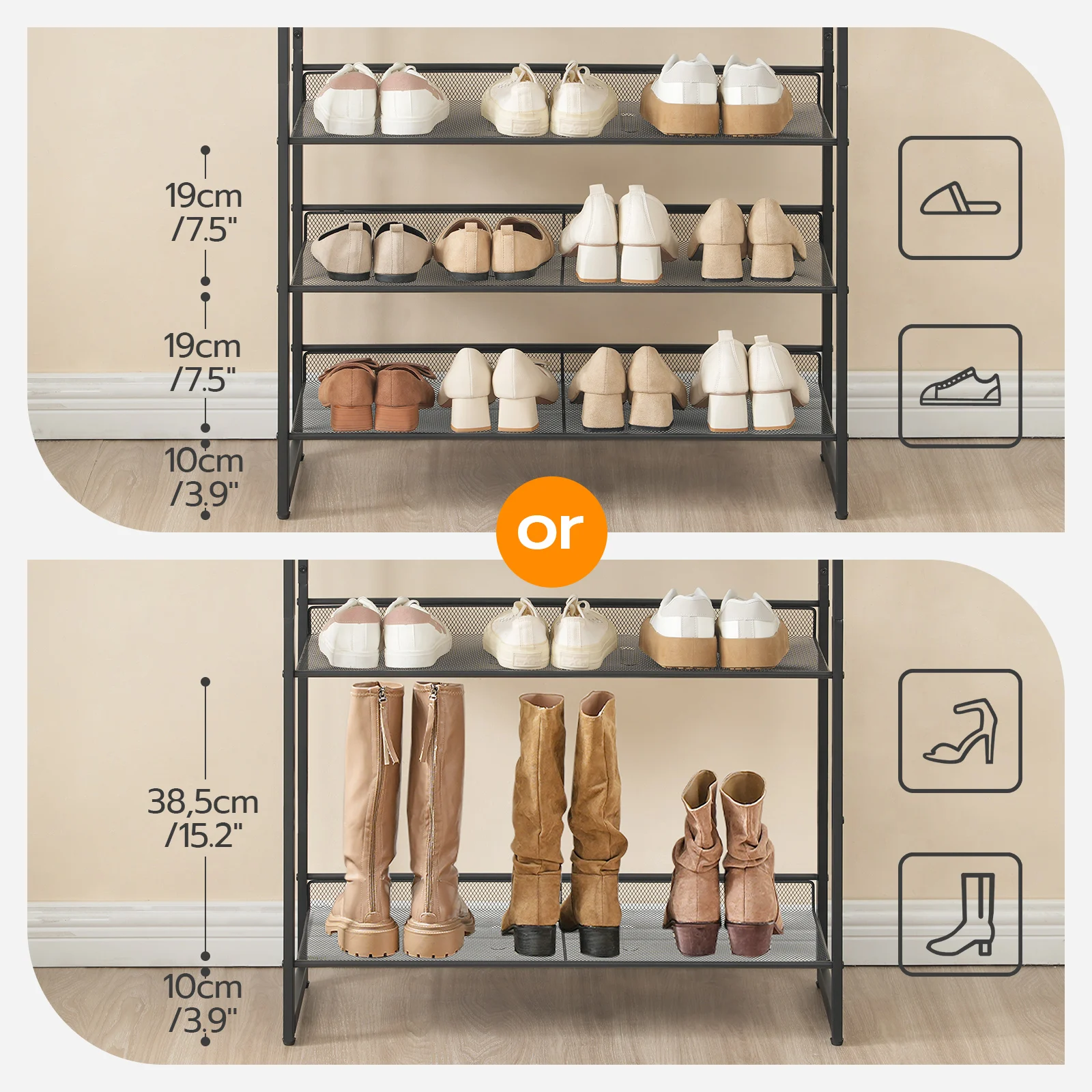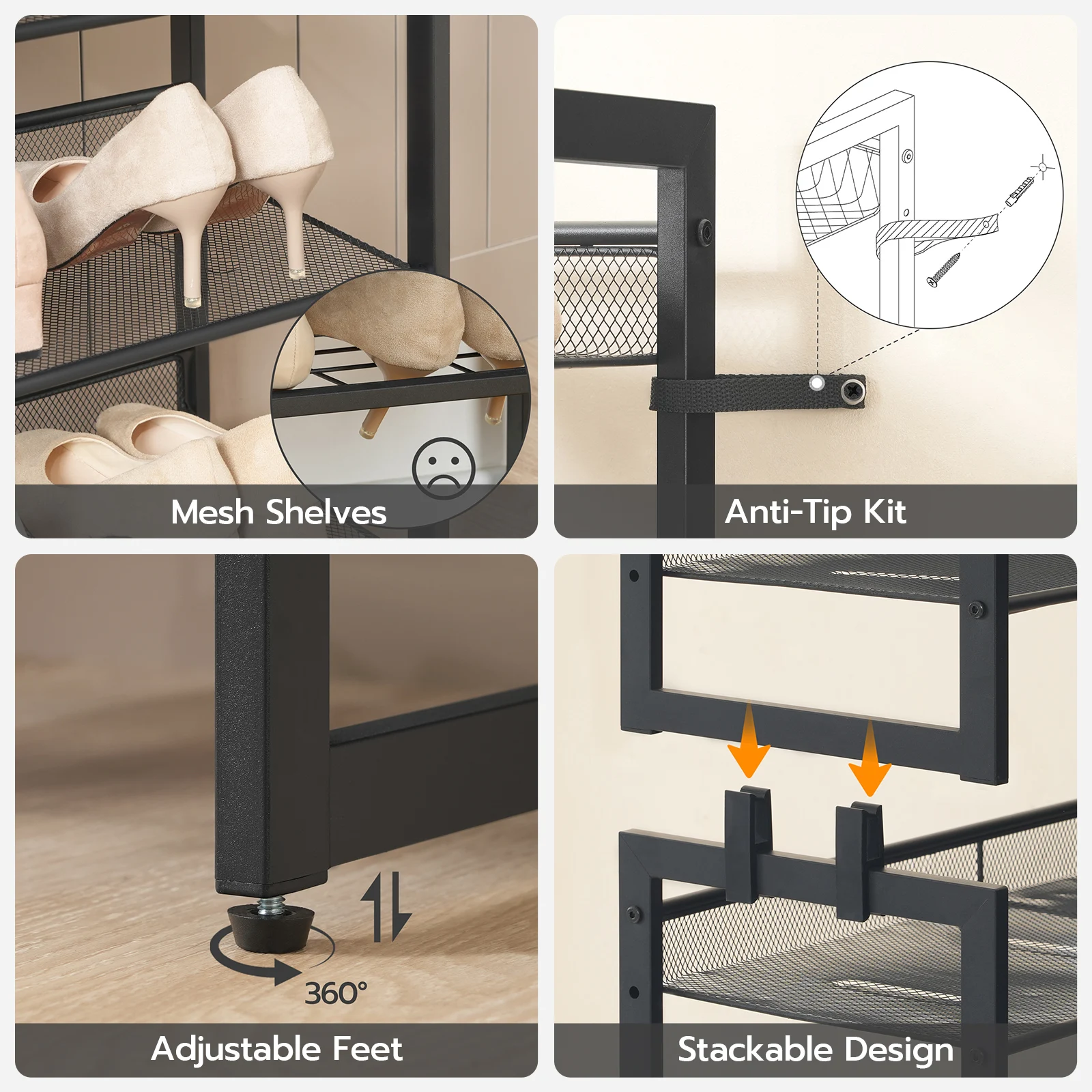 Wholesale Small Stackable Shoe Racks 3/4/5/6/8/10 Tier Shoe Storage Stand for Entryway 12/16/20/24/32/40 Pairs Shoes Organizer