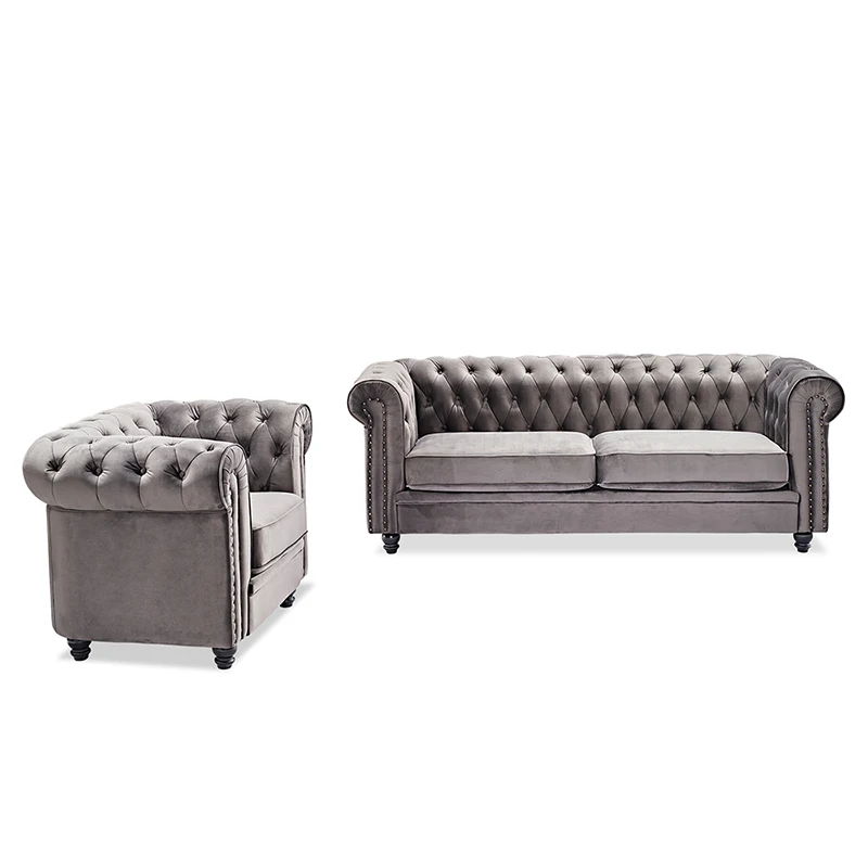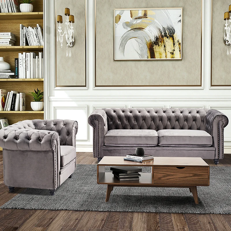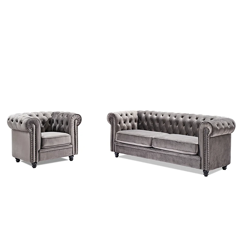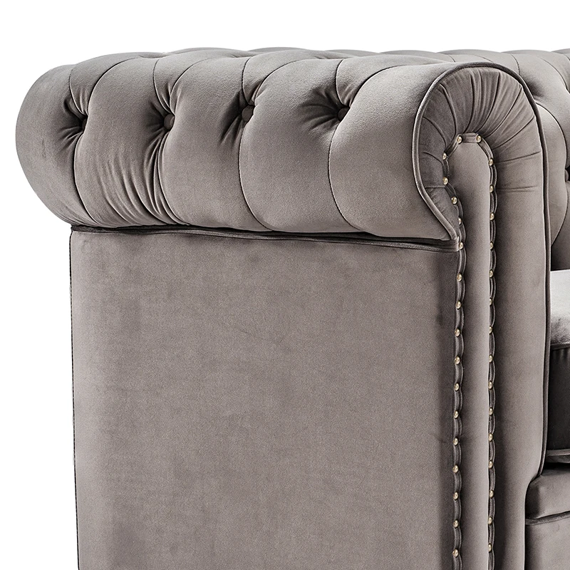 USA in stock drop shipping service home furniture villa sofa grey color l shape velvet sofa