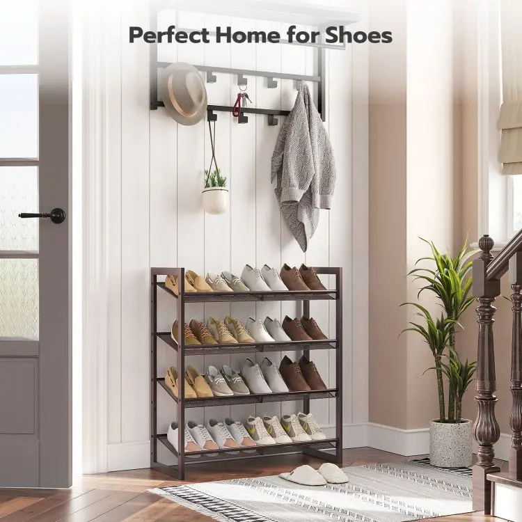 HOOBRO Space Saving Matel Shoe Racks Shoe Cabinet Adjustable 8 Tier Metal Storage Rack for Home