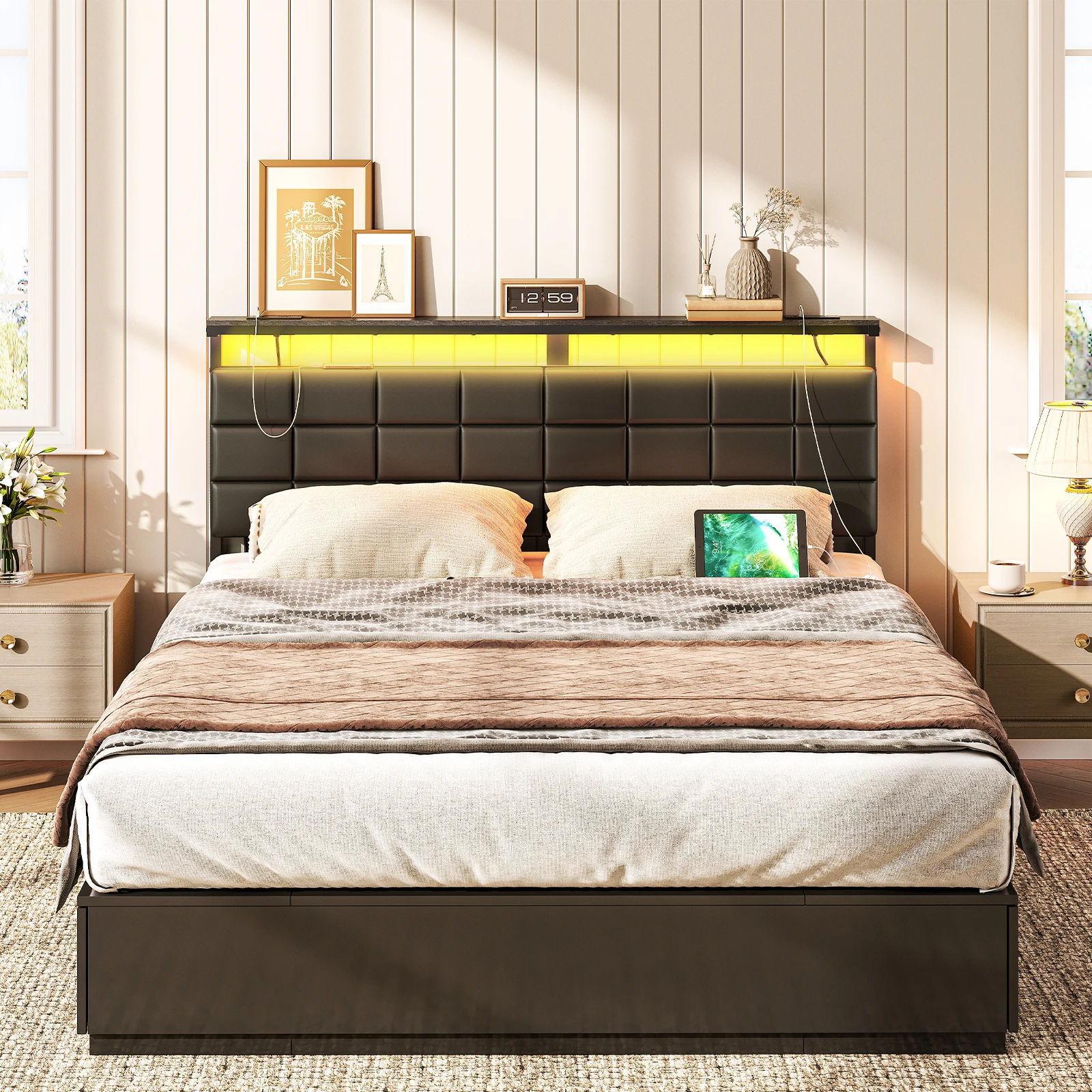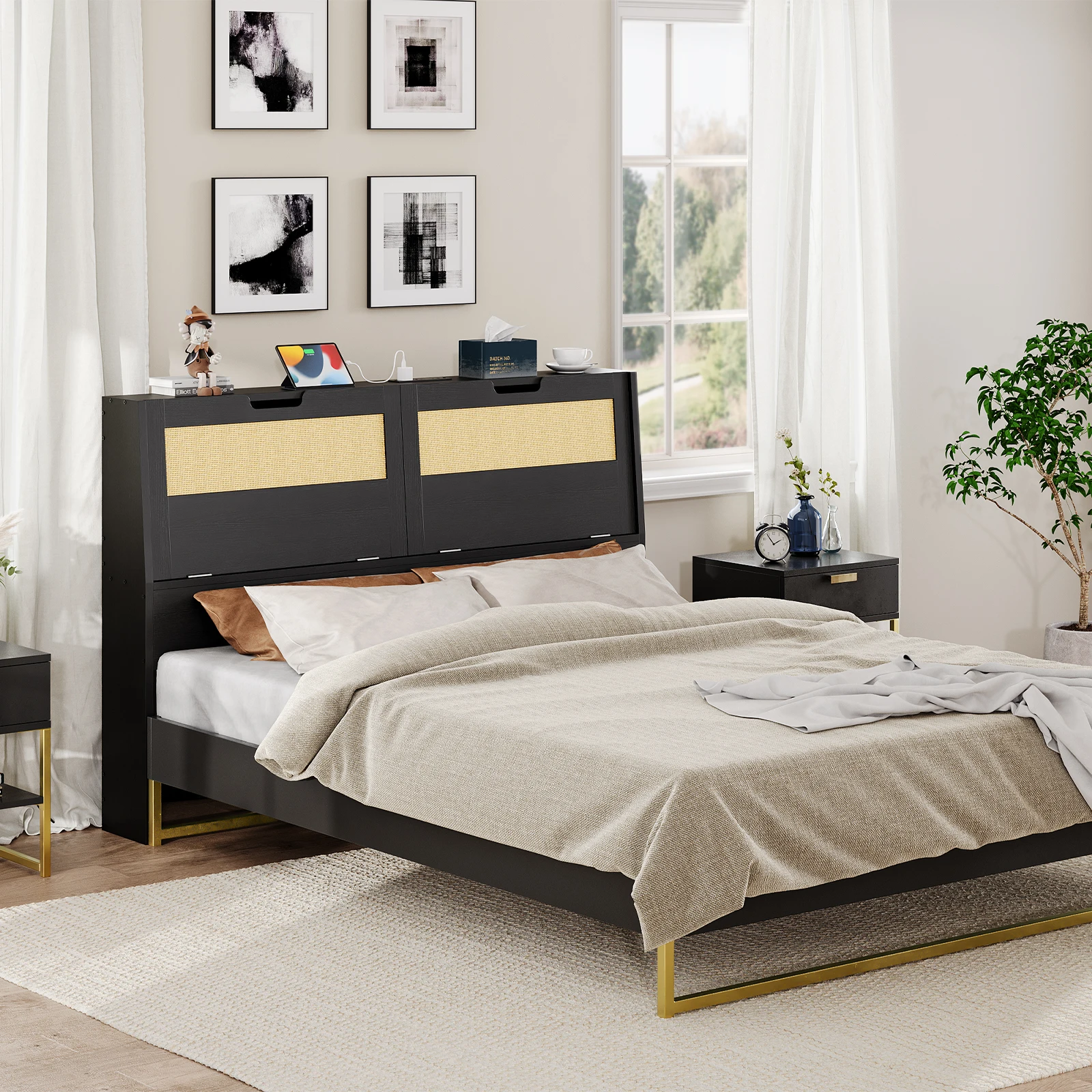 Wholesale Black Headboards, HOOBRO Brand Black Color King/Queen/Full/Doulbe/Twin/Single Size Bed Headboard for Bed Frame