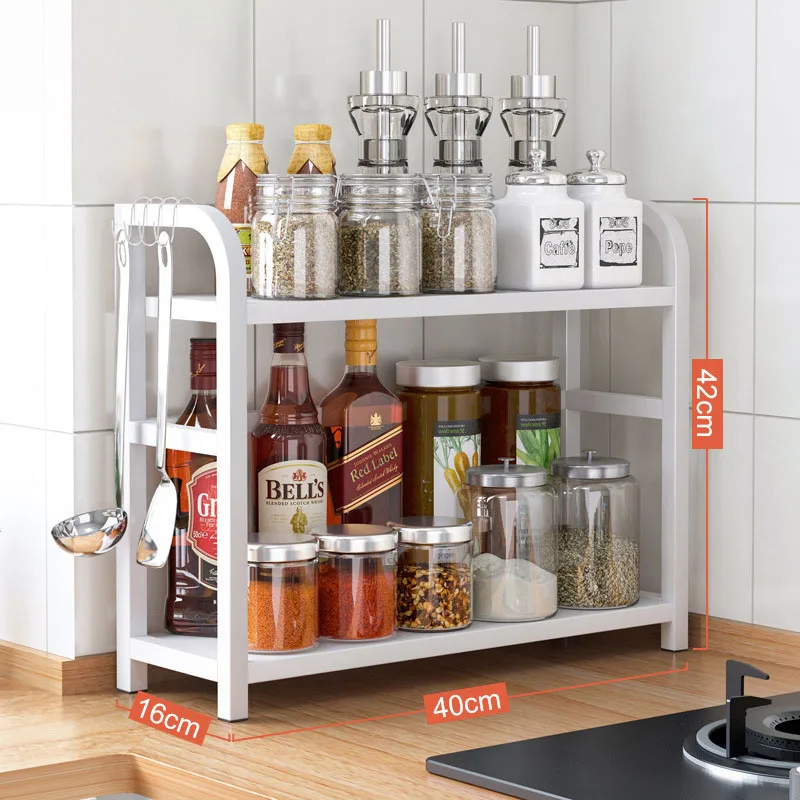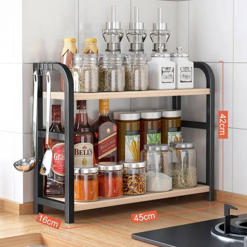 Multifunctional 2-Tier Vertical Spice Rack Eco-Friendly Metal and Wood Storage Holders for Home Pot Bowl Use