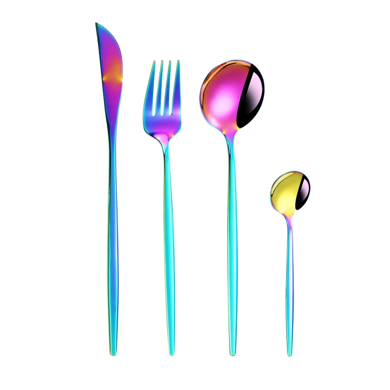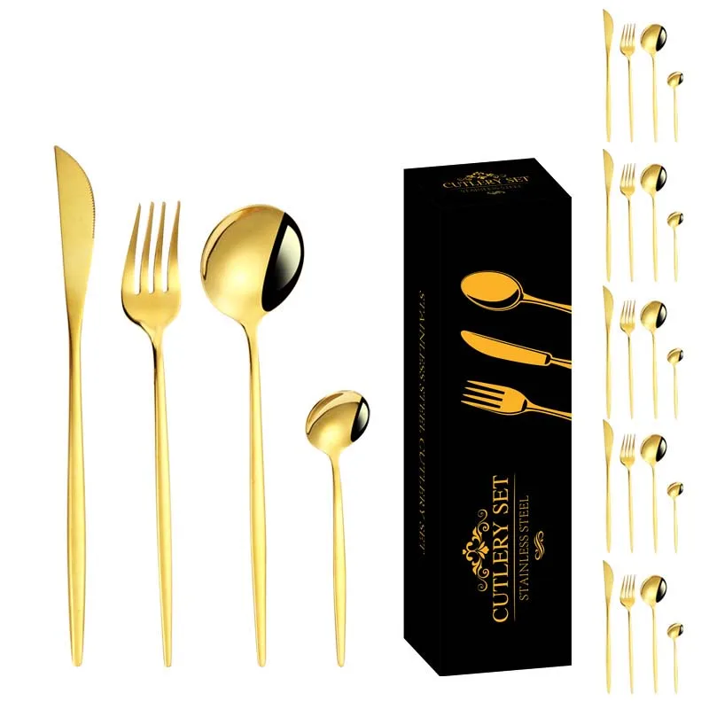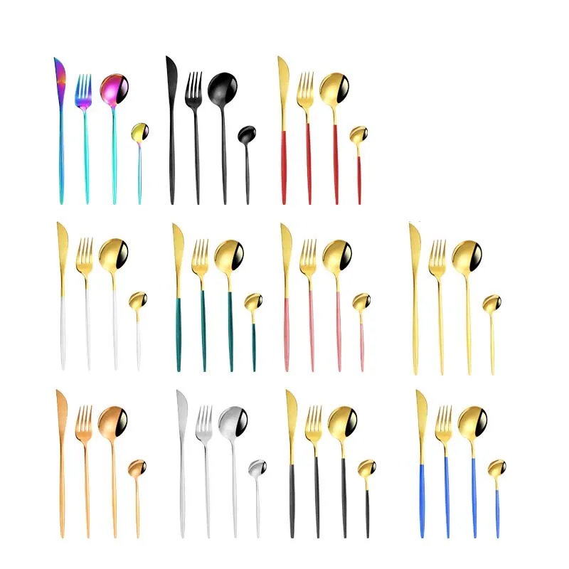 401 Stainless Steel Cutlery Set with Red Stem Gold & Silverware Eco-Friendly Flatware for Dinner & Wedding Travel Metal Material