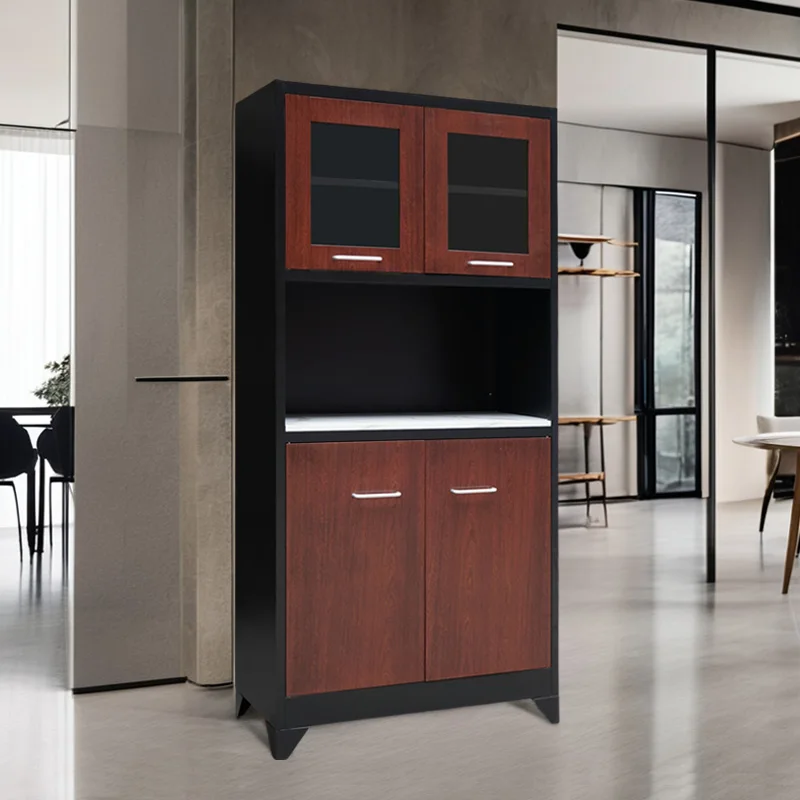 Modern MDF Wood and Steel Sideboard Cabinet Metal Tableware Rack Design for Dining Entry Bathroom School Kitchen Furniture