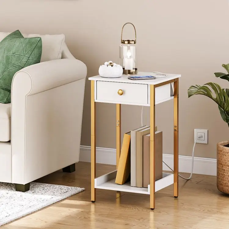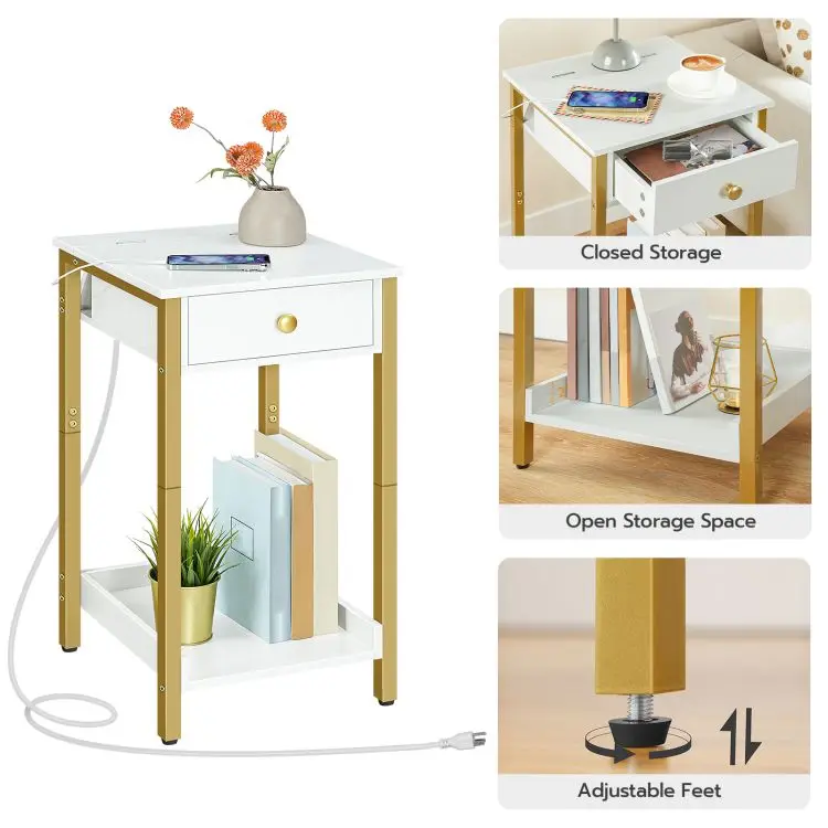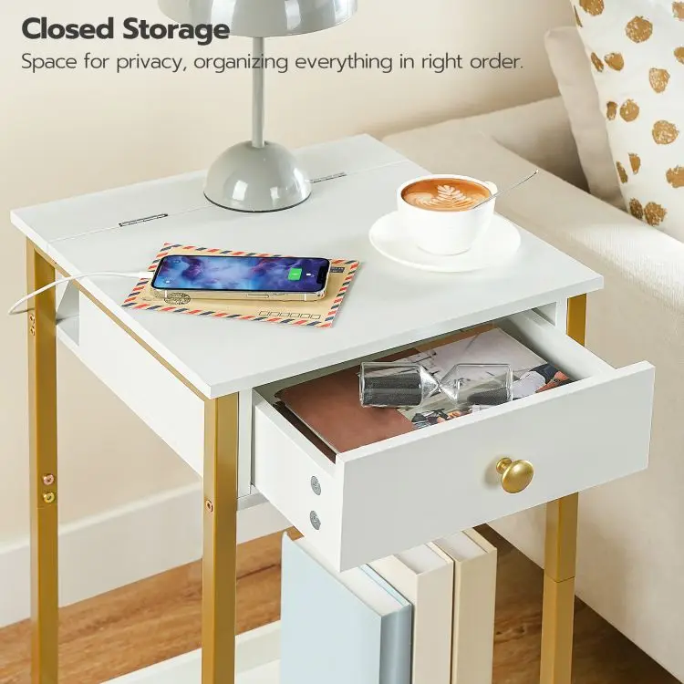 bedside table with charging station high side table with drawers and storage