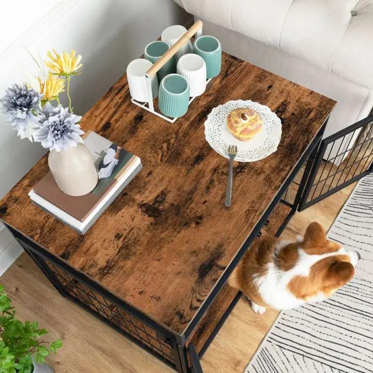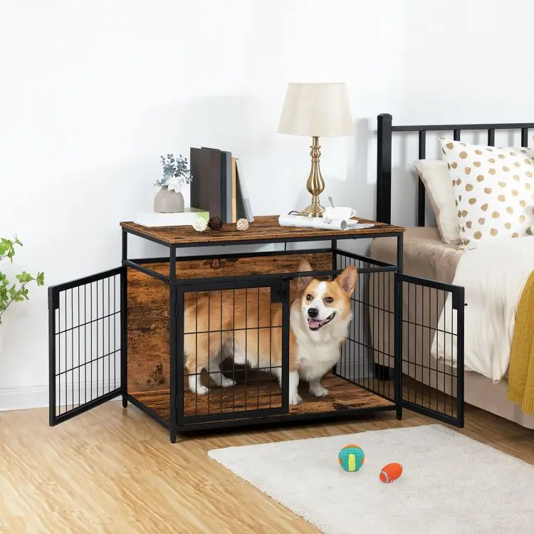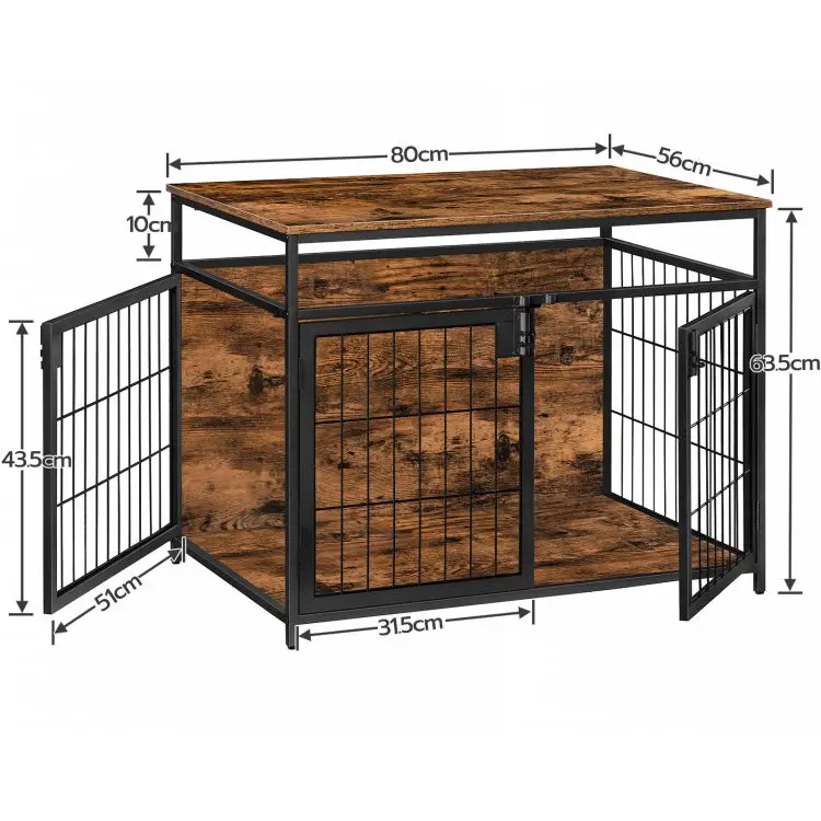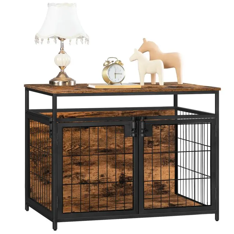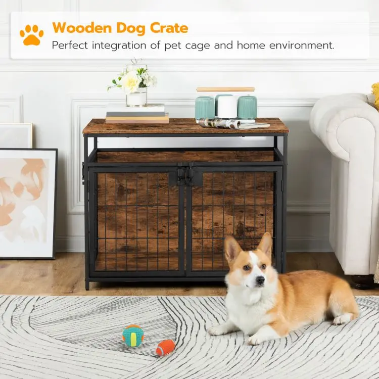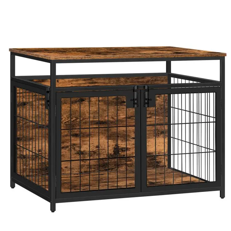 Dog Crate Industrial Style Wooden Decorative Indoor Pet Cage Kennel with 2/3 Doors Dog Cage House with Wood Top and Metal Doors
