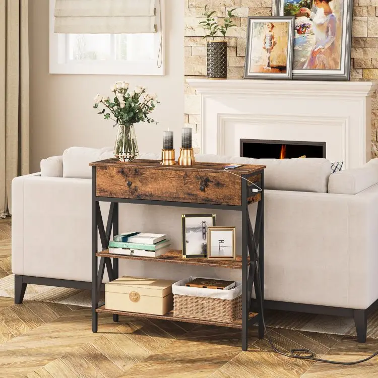 Wholesale Small Console Tables, HOOBRO Brand Mini Sofa Console Table, Tiny Behind the Couch Console Table for Couch