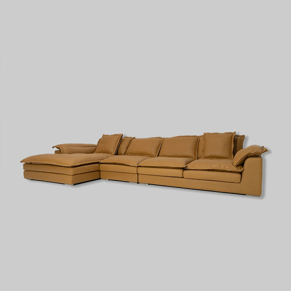 modern waterproof leathaire fabric l shape deep sitting chesterfield big corner sofa set for living room