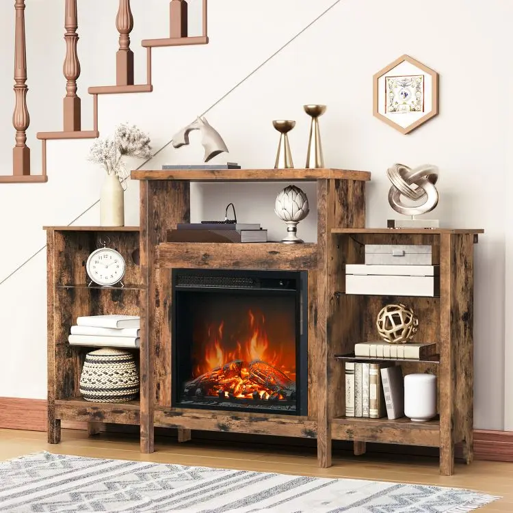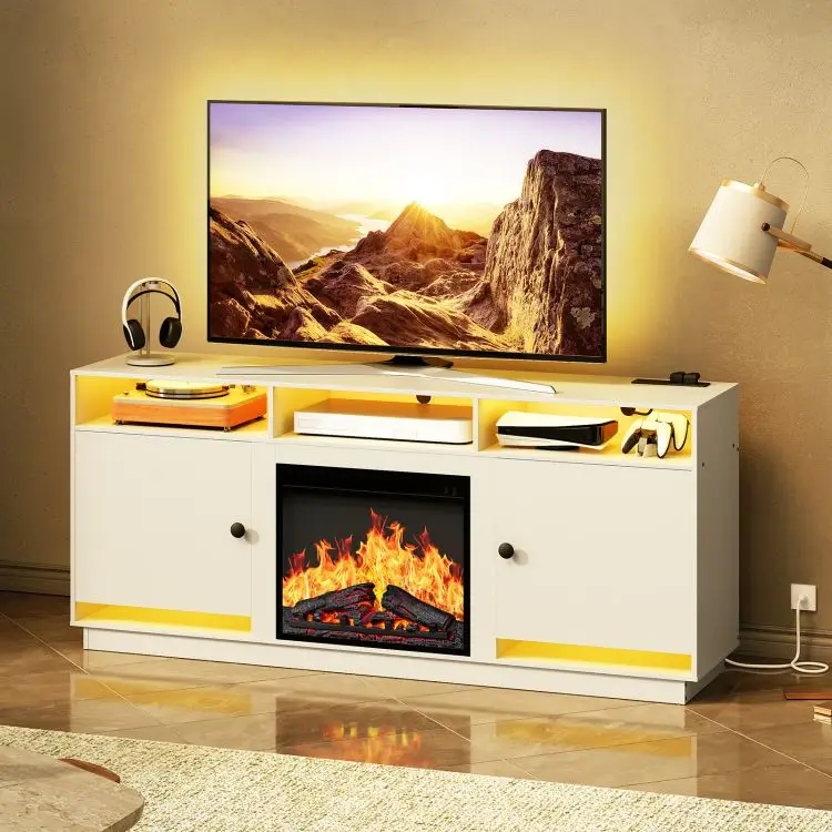 Wholesale Electric Fireplace Media Console Table, HOOBRO Brand Media Cabinet with Fireplace, Fireplace Media Unit Media Stand