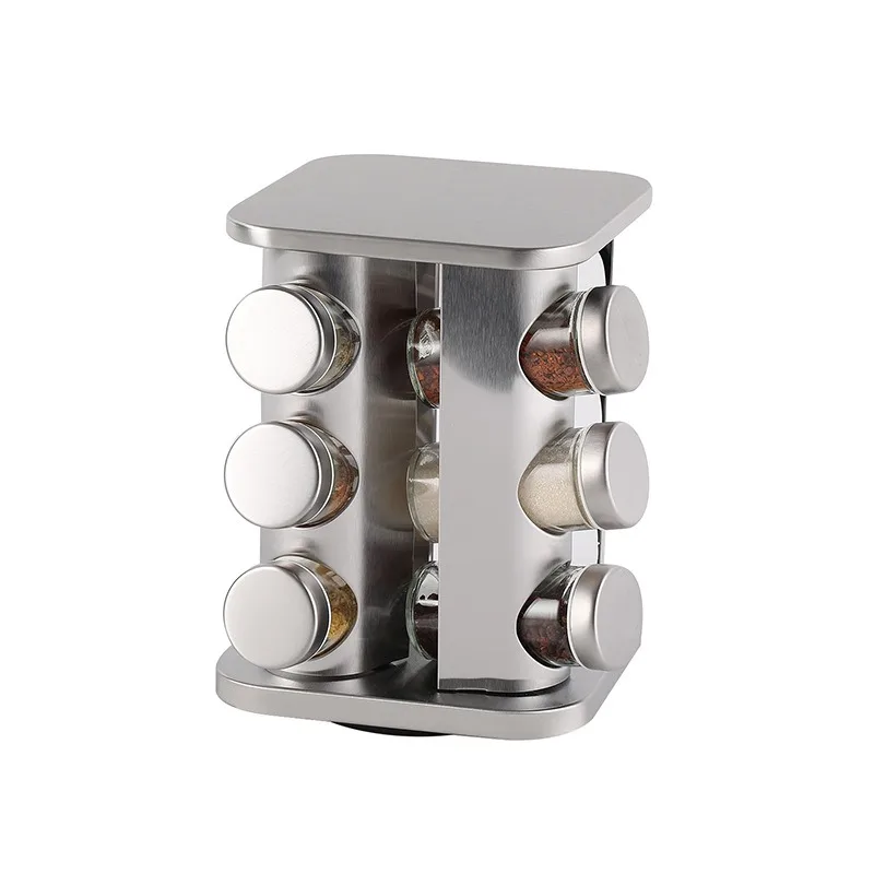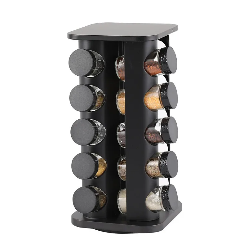Kitchen Standing Type Spice Rack Organizer Metal and Wood Rotating Spice Jar Holder and Shelf for Efficient Storage