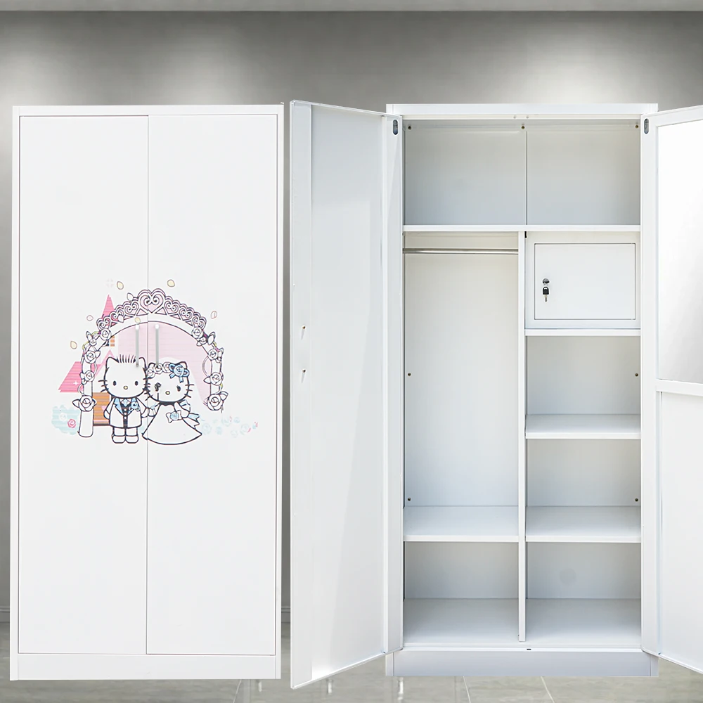 2-Door Detachable Steel Almirah Modern Sliding Printed Flower Pattern Metal Wardrobe/Clothes Cabinet Home Bedroom Gym-for Hotels