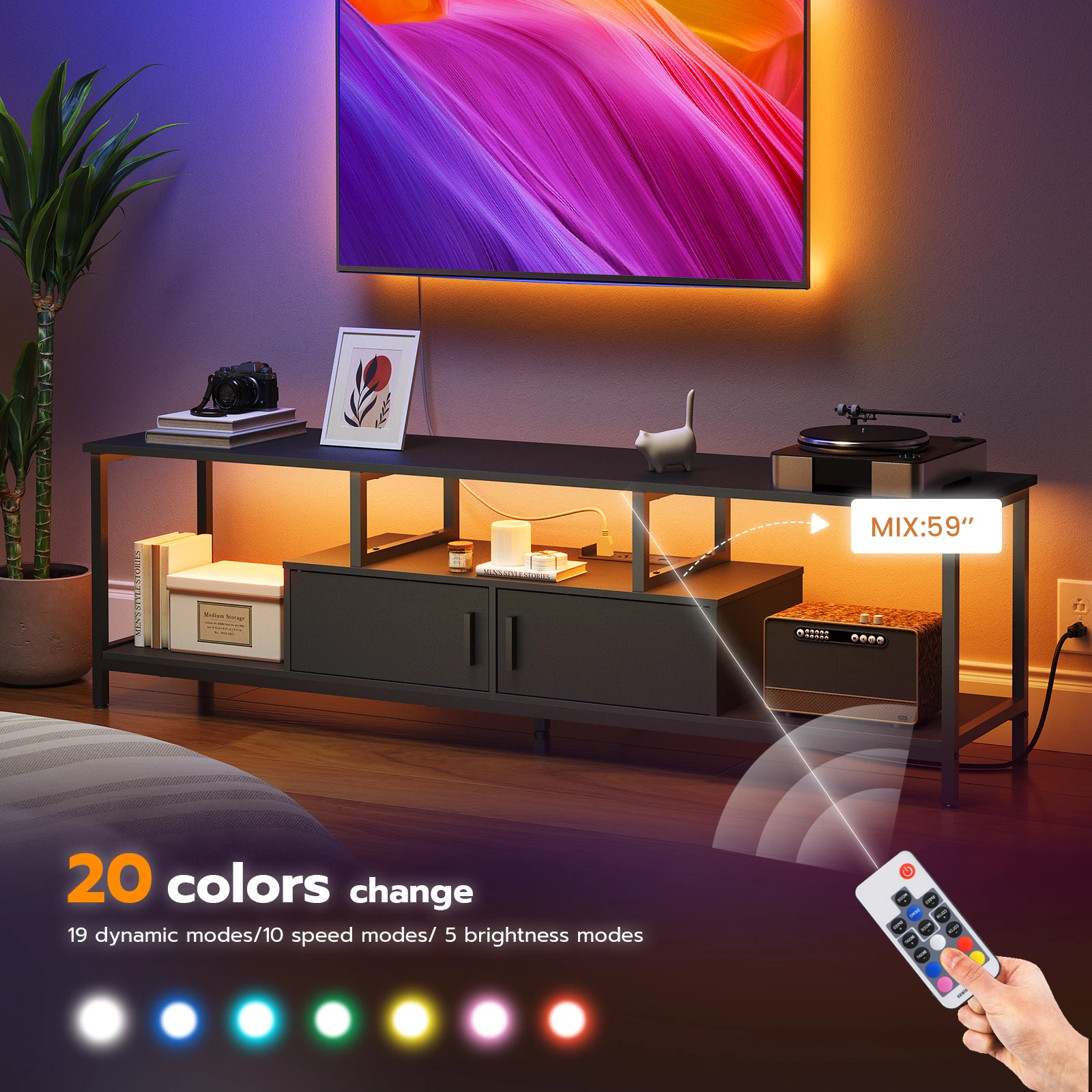 Wholesale LED Entertainment Center, HOOBRO Brand Entertainment Unit with LED Lights, Entertainment Centers Entertainment Cabinet