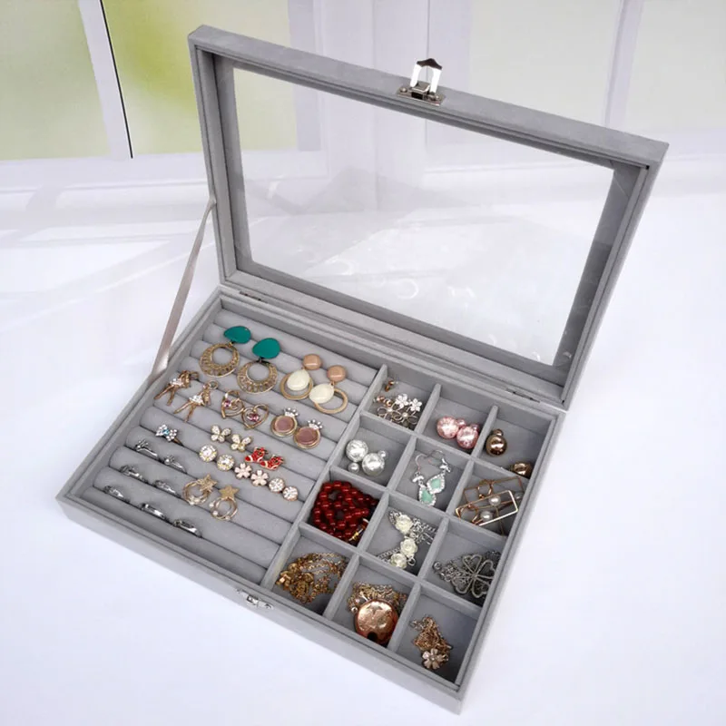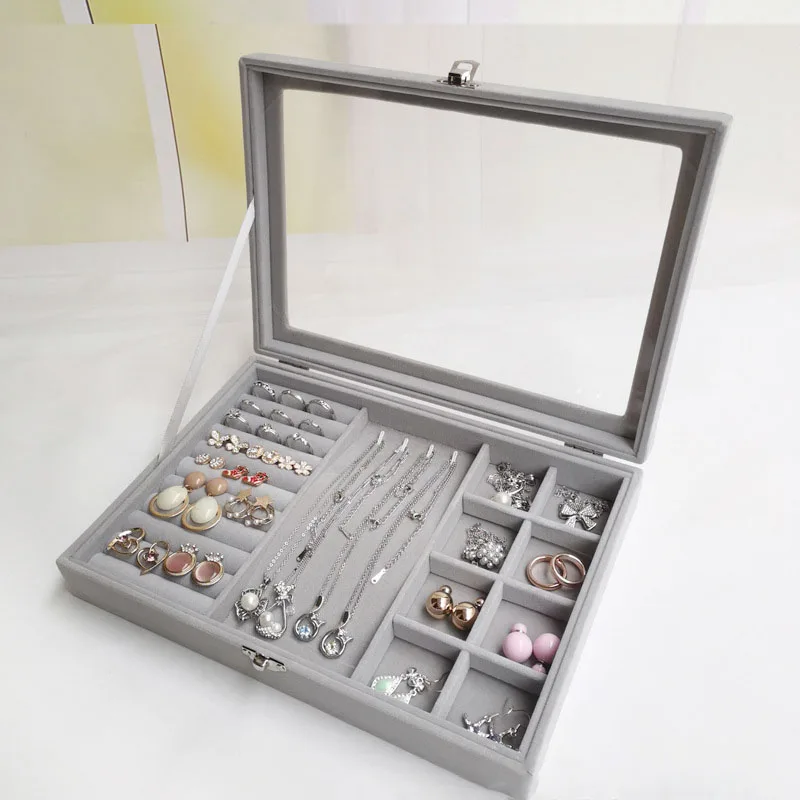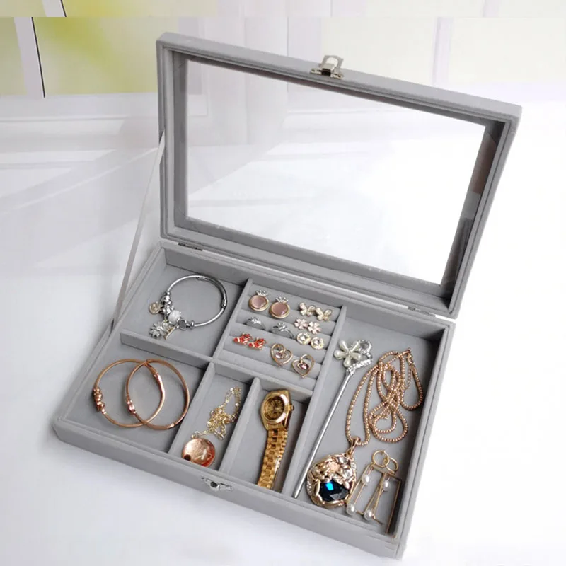 Factory Wholesale Large Transparent Rectangle Modern Design Storage Trays Asian Hinged Trinket Box Living Room Jewelry Storage