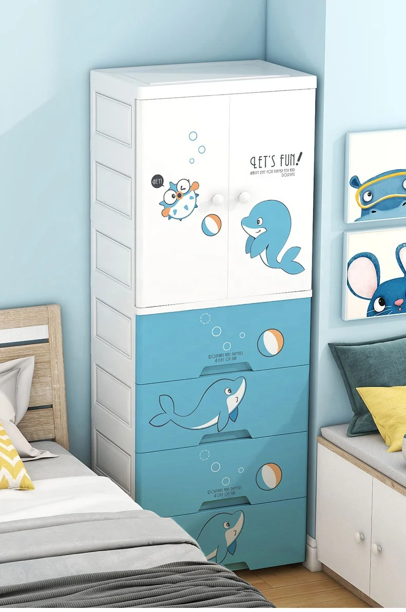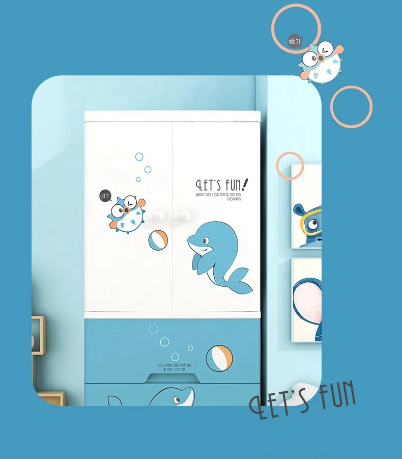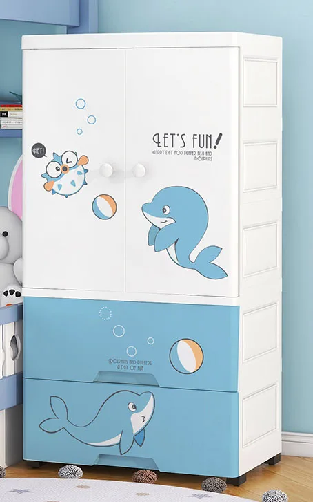 VIC Thickened children's wardrobe cartoon simple bedroom storage cabinet plastic baby double door hanging wardrobe