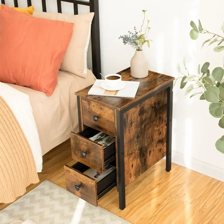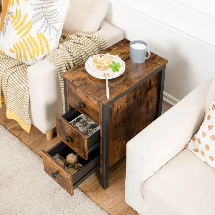 Wholesale Side Table with 3 Drawers, HOOBRO Brand End Tables with Three Drawer, 3 Drawer Accent Lamp Table for Living Room