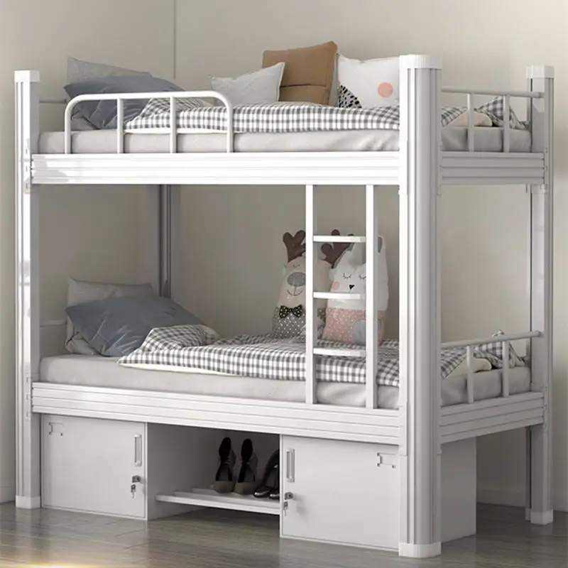 Guangzhou Factory's High Quality Heavy-Duty Dormitory Student Steel Metal Single Bunk Bed with Storage School Furniture