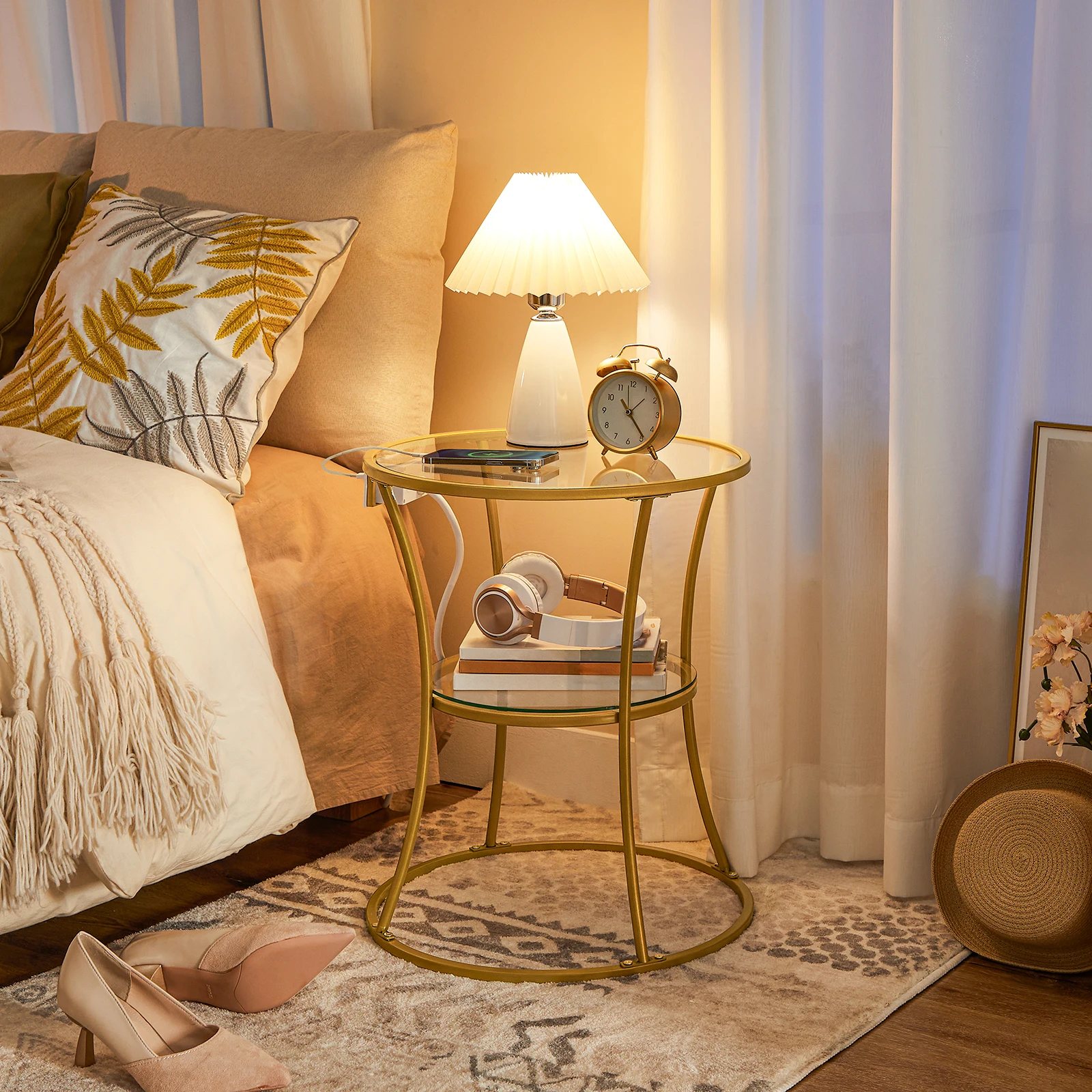 Wholesale Round Nightstands, HOOBRO Brand Circle Bedside Table, Round Bed Side Table for Bedroom, Round Lamp Accent Tables