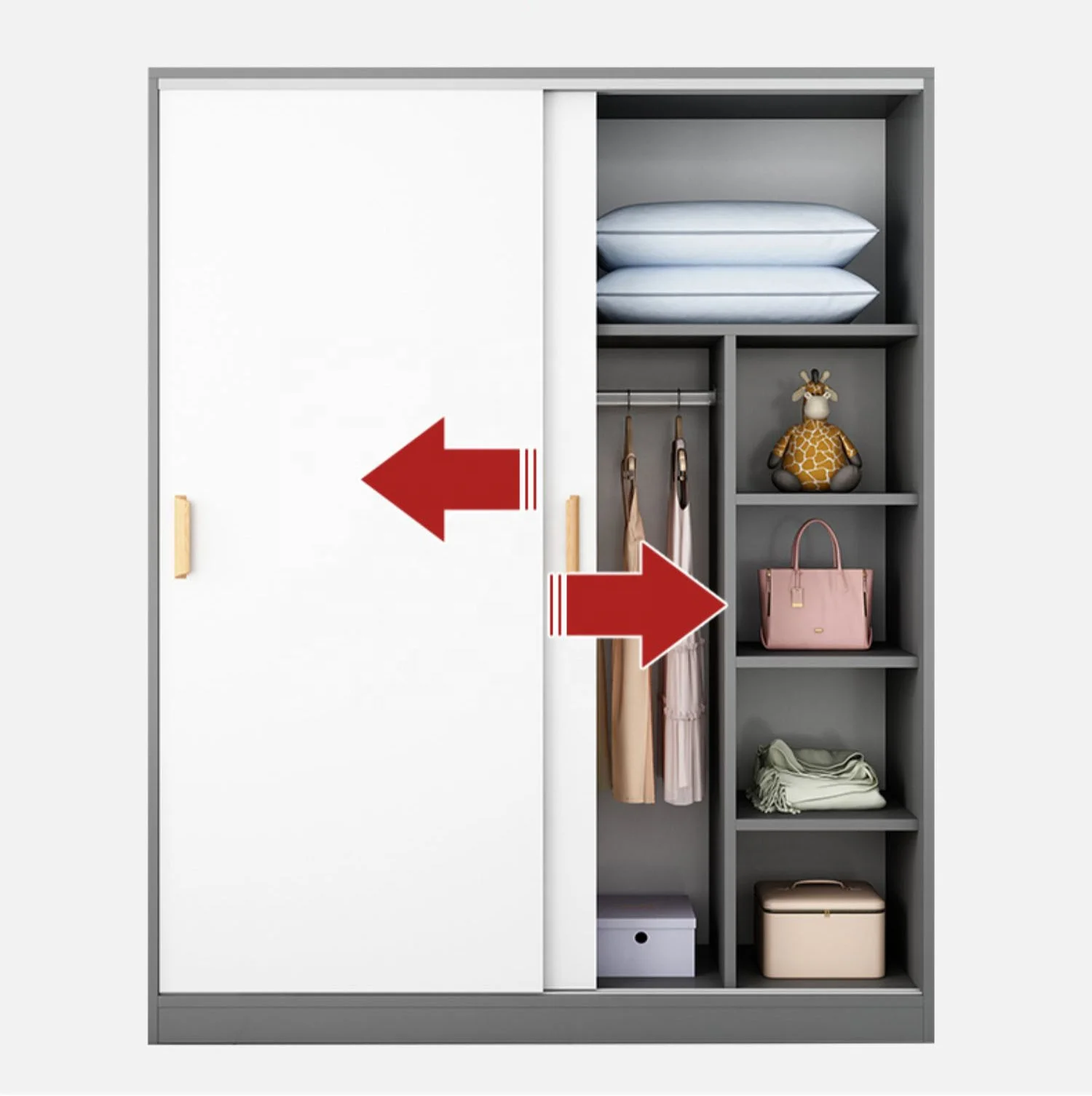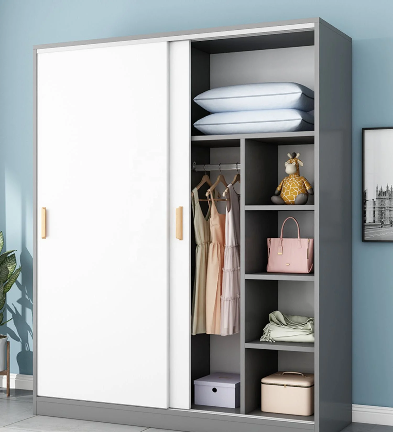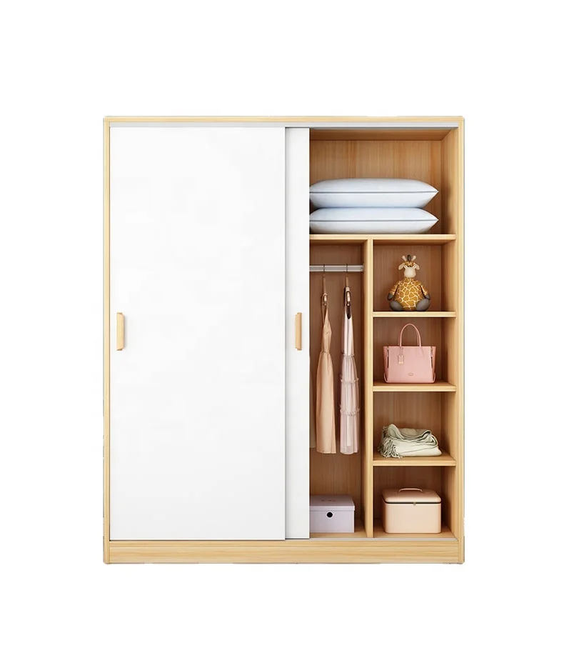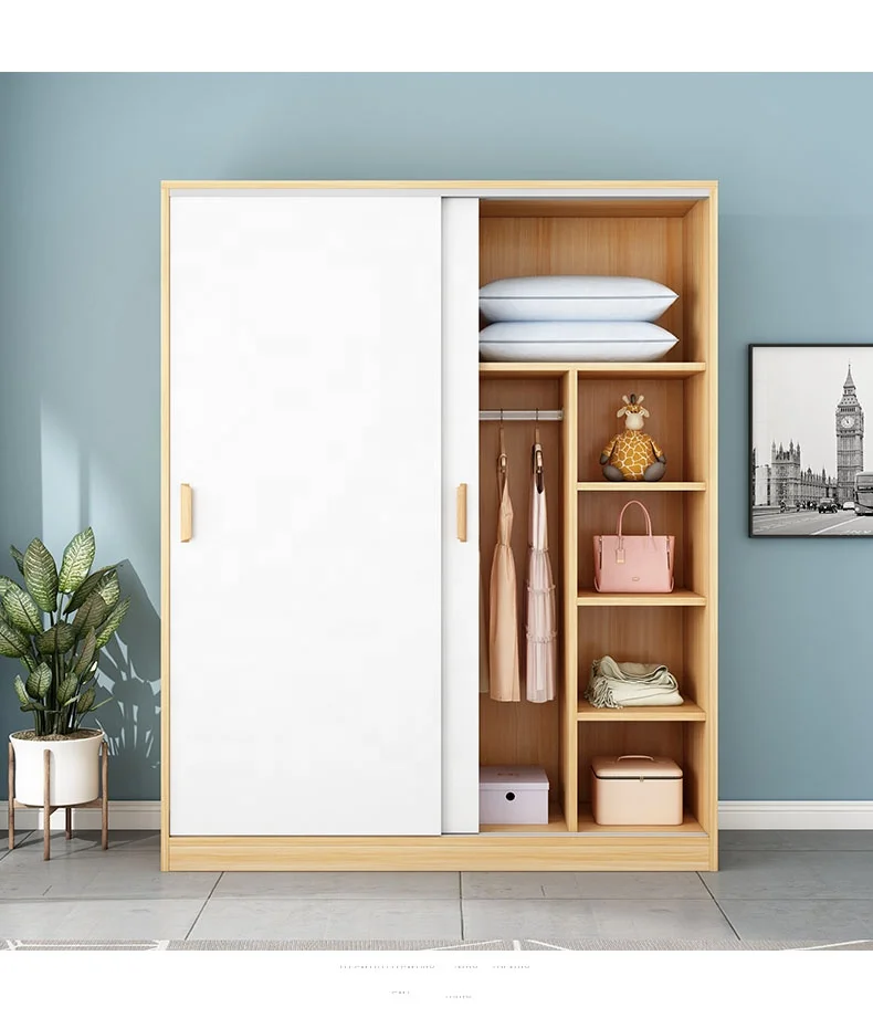 Sliding door wardrobe modern simple solid wood rental home bedroom simple cabinet hanging wardrobe
