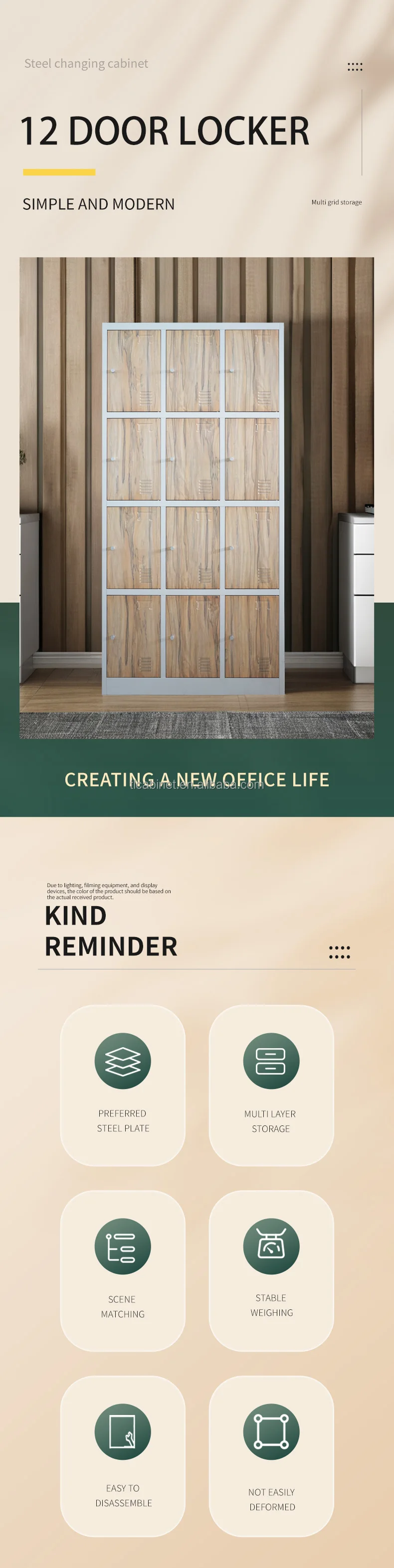 Modern 12-Door Steel Locker Cabinet Office Worker for Bedroom Living Room Bathroom Laundry for School Gym Changing Room