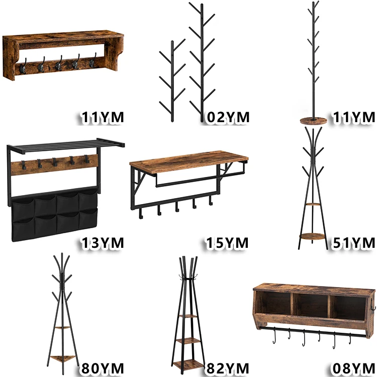 OEM Coat Rack Metal & Wood Coat Stand, Custom Coat Hooks with Storage Shelf, Coat Hanger Stand Tree for Entryway