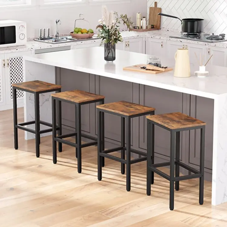 Wholesale Rectangle Dining Stools Set of 2 Industrial Style Tall Chairs Rectangular Height Breakfast Stool Bar Counter Chair