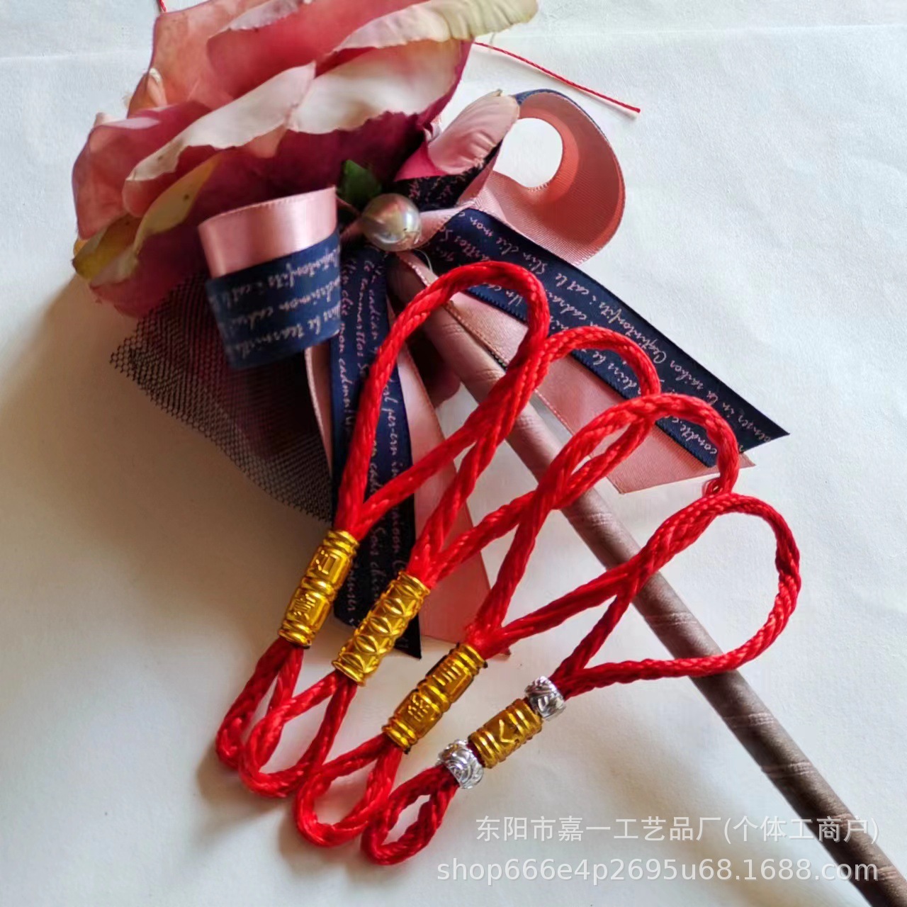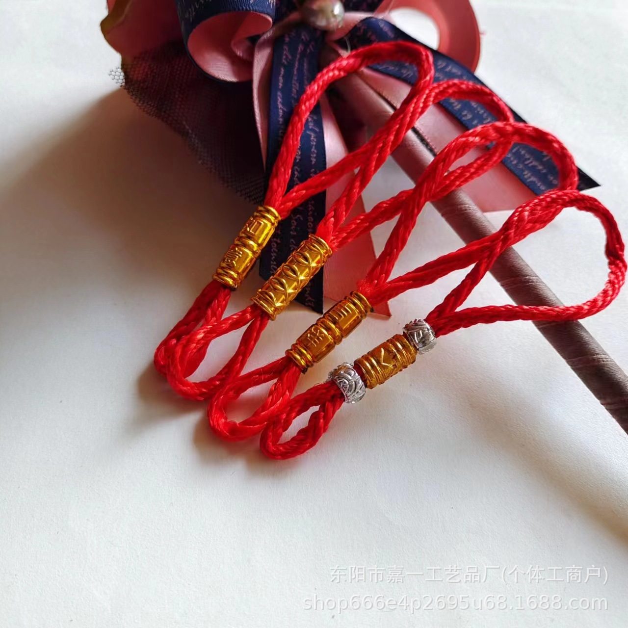 red rope gold tube lucky luck hanging end 11.5