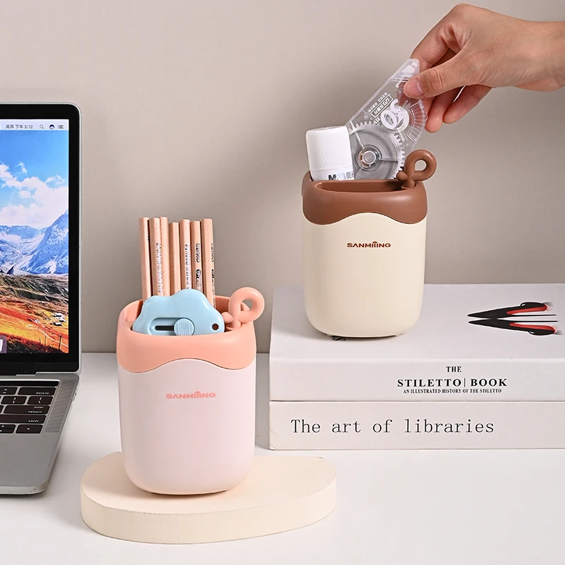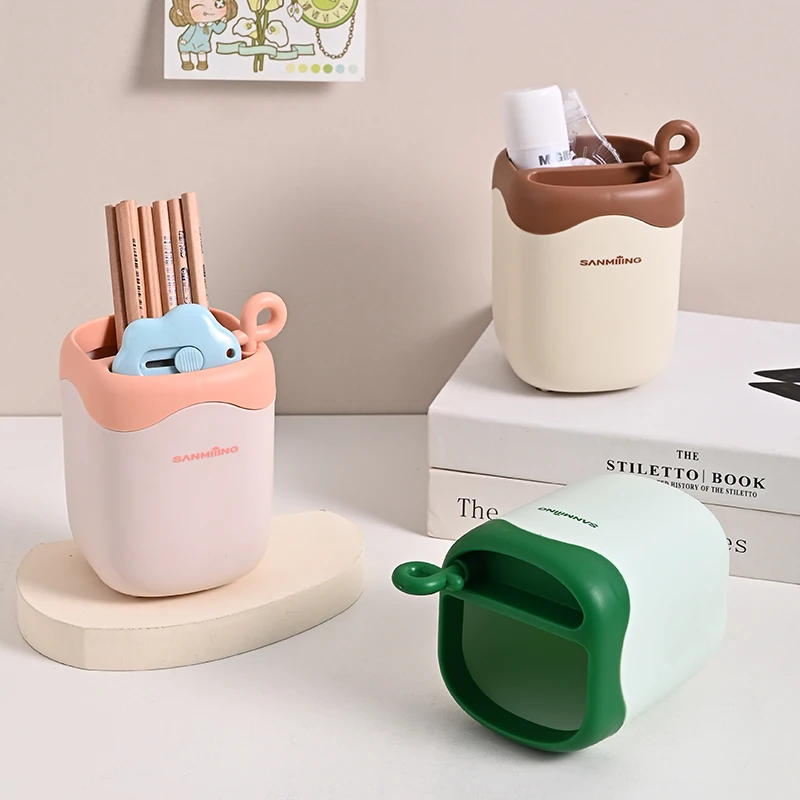 Wholesale Oem Custom S Plastic Pen Holder Multifunctional Gold Plastic Office Desk Organiser Pen Holder Stationery Organiser
